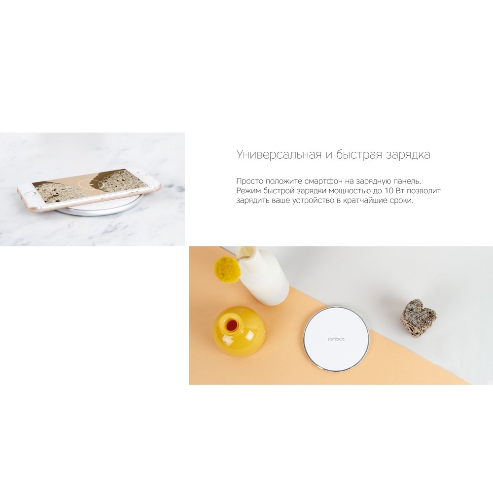 Технические характеристики Беспроводное зарядное устройство Rombica «NEO Core Quick» c быстрой зарядкой, белый (с лого)