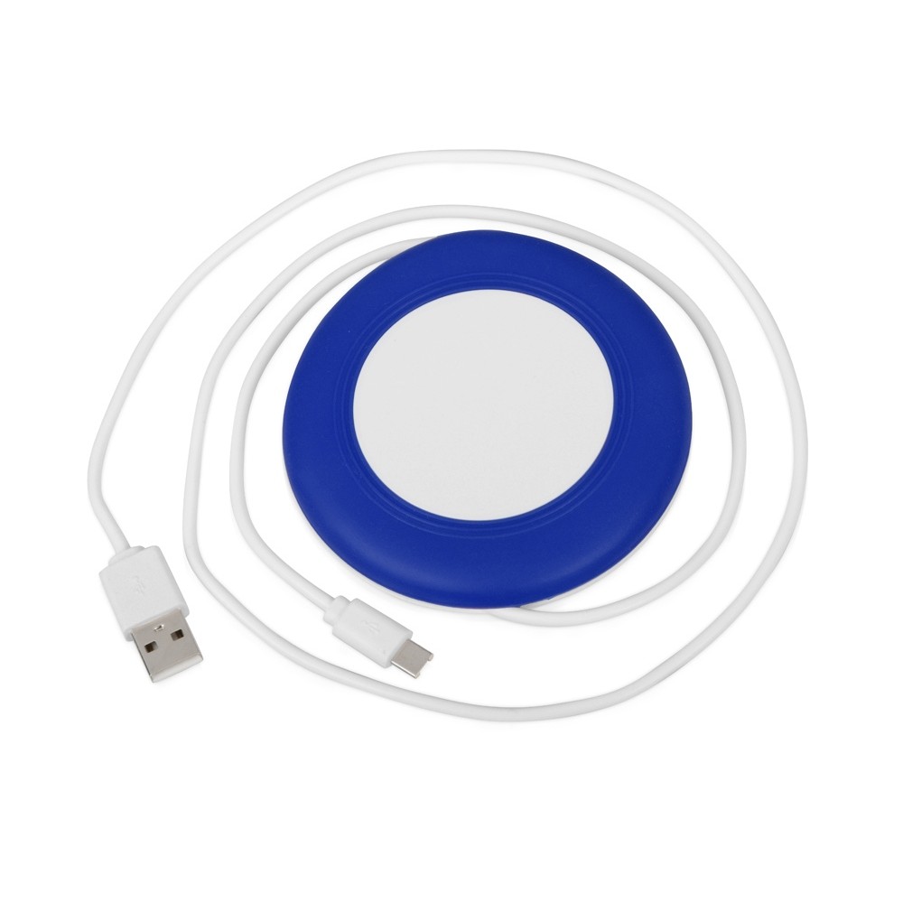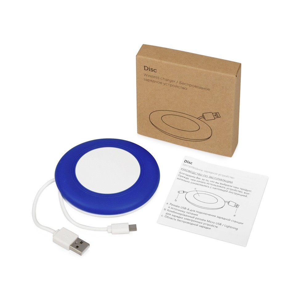 Беспроводное зарядное устройство со встроенным кабелем 2-в-1 "Disc", синий