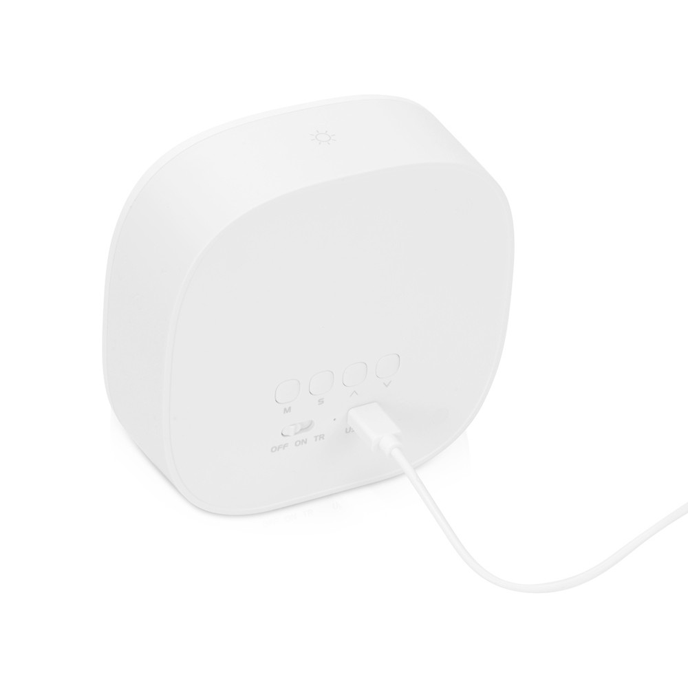Беспроводные часы имеют функцию будильника, режим энергосбережения, а также режим сна, который поможет с комфортным засыпанием: в нем дисплей постепенно гаснет в течение 30 минут.