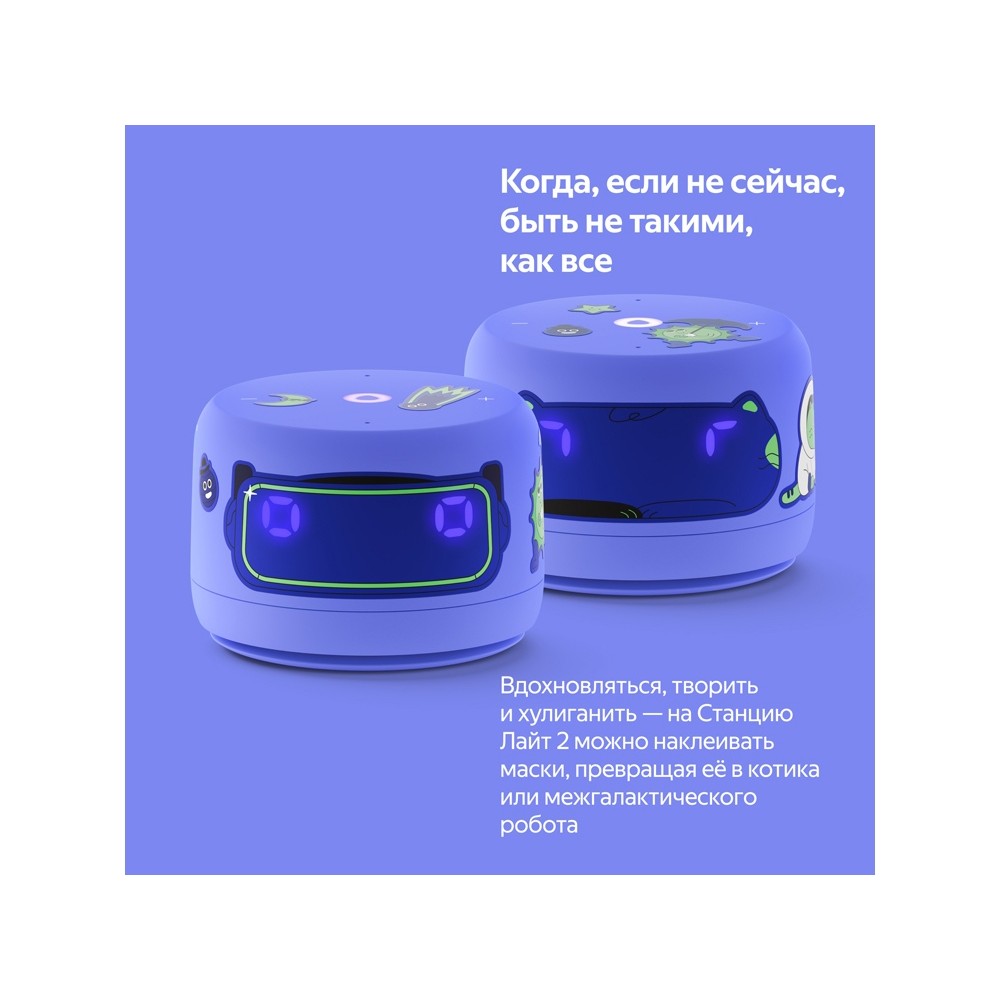 Вдохновляться, творить и хулиганить — на Станцию Лайт 2 можно наклеивать маски, превращая её в котика или межгалактического робота. А стикерами из набора здорово украшать и умную колонку, и всё вокруг.