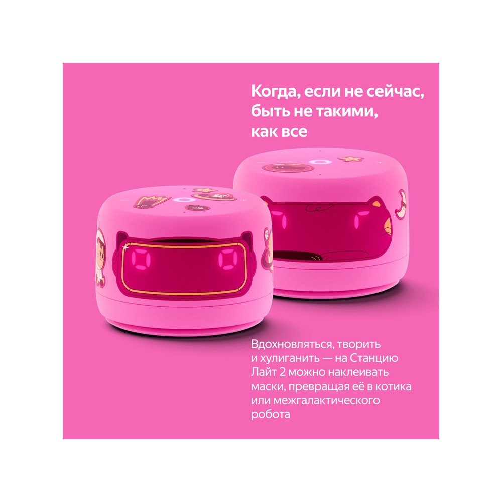 Вдохновляться, творить и хулиганить — на Станцию Лайт 2 можно наклеивать маски, превращая её в котика или межгалактического робота. А стикерами из набора здорово украшать и умную колонку, и всё вокруг.