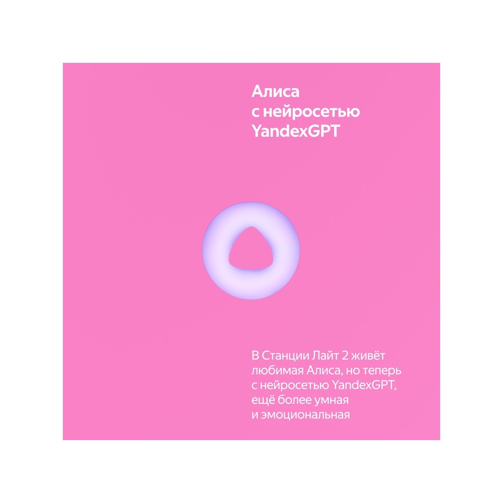 В Станции Лайт 2 живёт любимая Алиса, но теперь с нейросетью YandexGPT, ещё более умная, функциональная и эмоциональная. День за днём, детям и взрослым её компания никогда не наскучит.