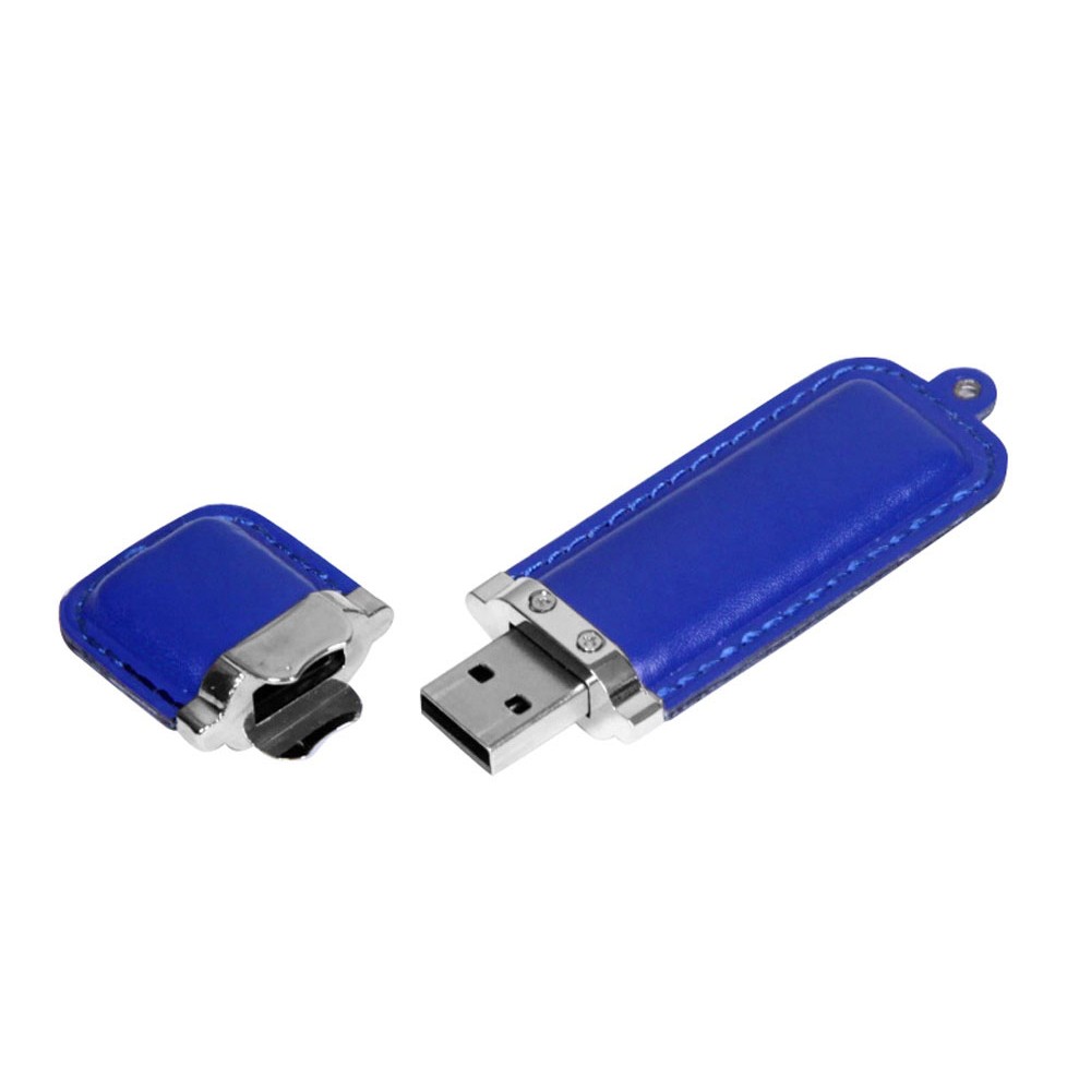 Флеш-накопитель классической прямоугольной формы, 128 Гб. Кожаный корпус.