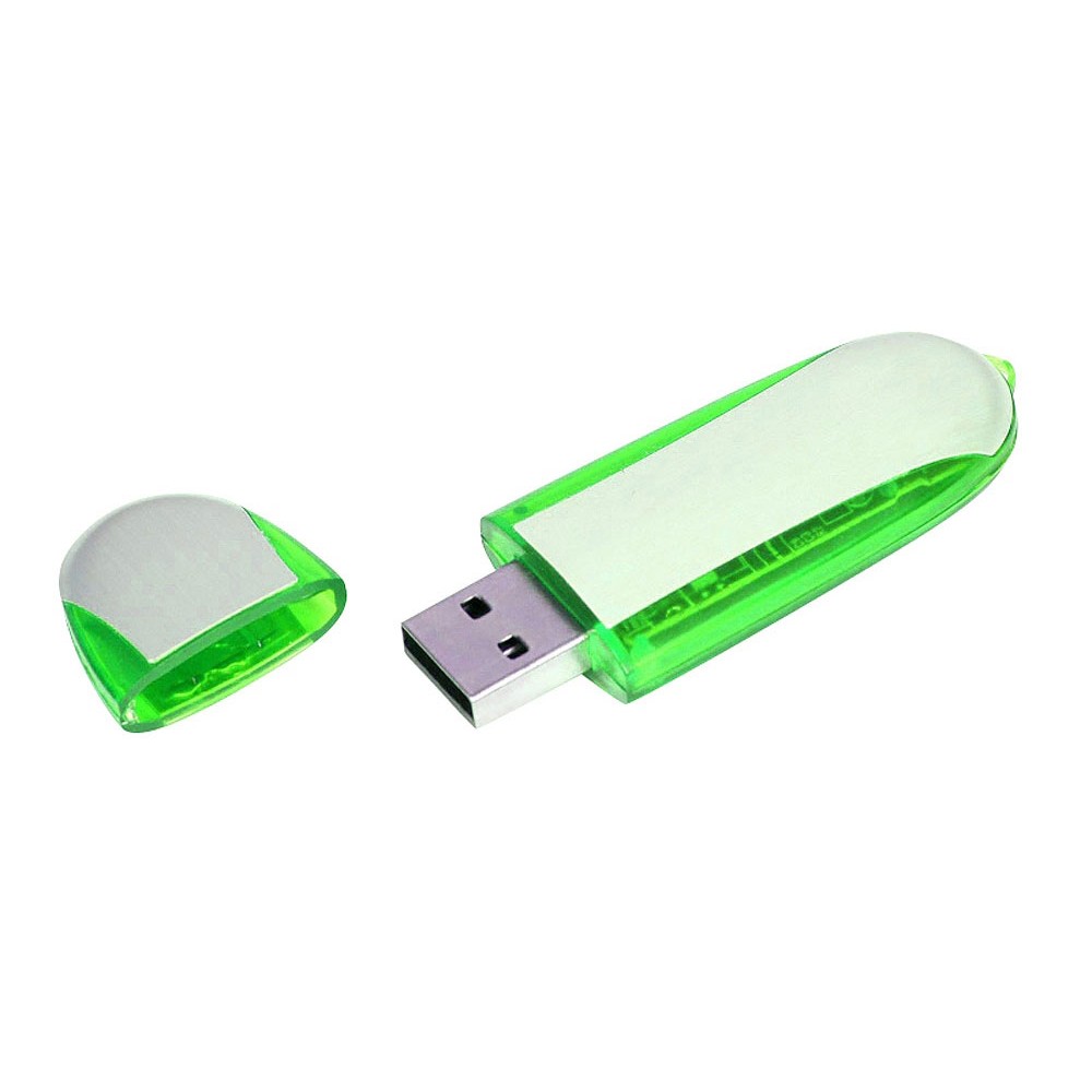 Флеш-накопитель промо овальной формы, 32 Гб. Пластиковый корпус, металлические вставки.