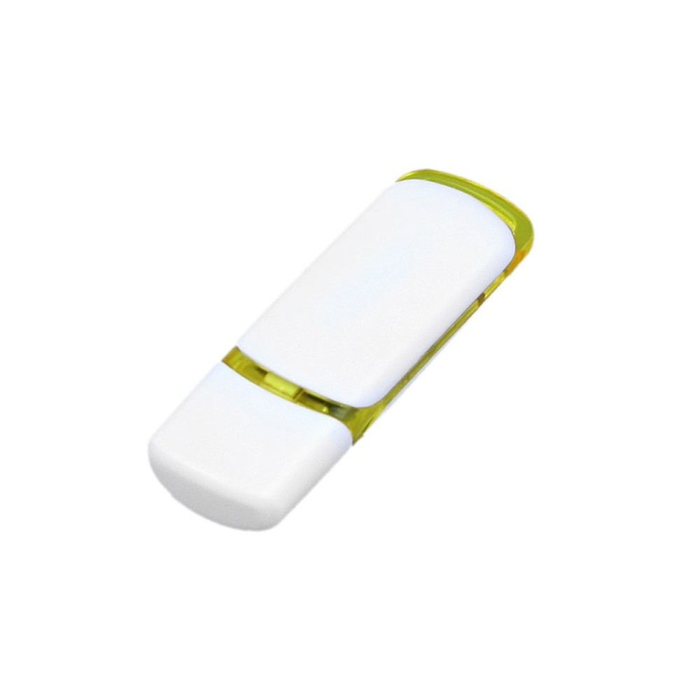 Флешка 3.0 промо прямоугольной классической формы с цветными вставками, 128 Гб, белый/желтый