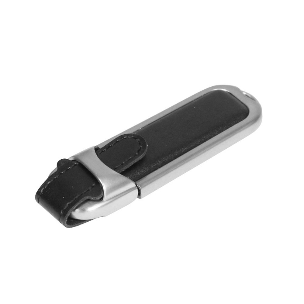 Флеш-накопитель с массивным классическим корпусом, 64 Гб. Кожаный корпус, металлические вставки.