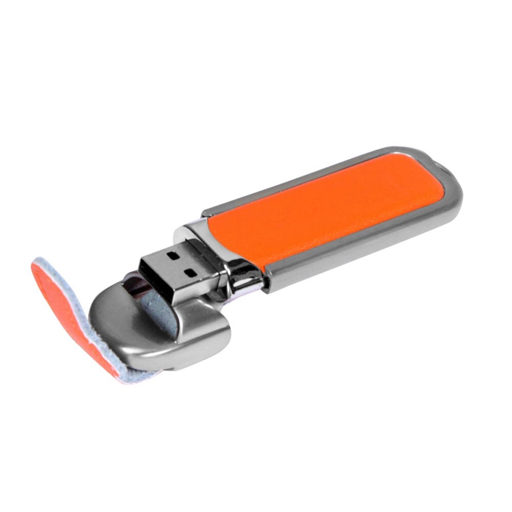 Флеш-накопитель с массивным классическим корпусом, 64 Гб. Кожаный корпус, металлические вставки.