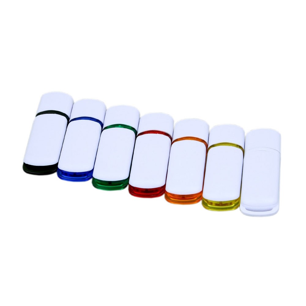 Флеш-накопитель промо прямоугольной классической формы с цветными вставками, объем памяти 8 Гб. Пластиковый корпус.