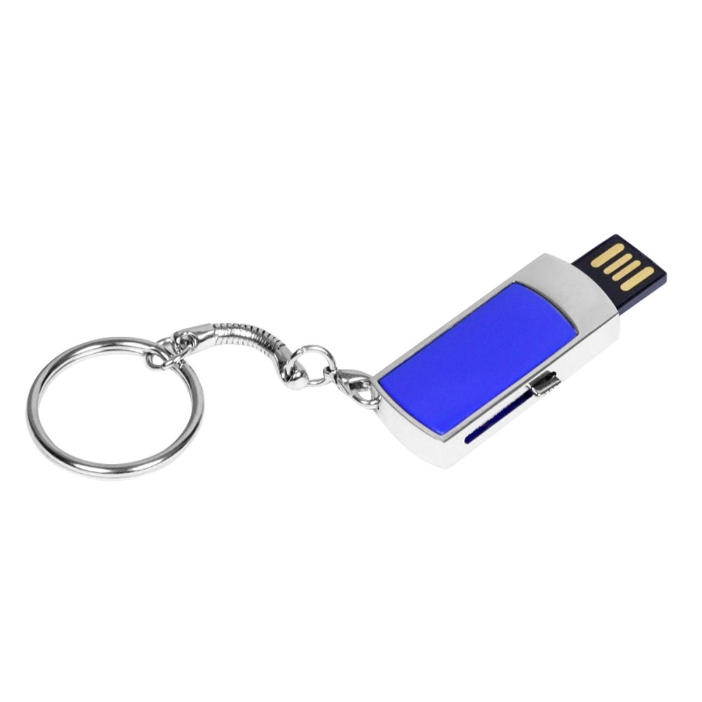 Флешка прямоугольной формы, выдвижной механизм с мини чипом, 64 Гб, синий/серебристый