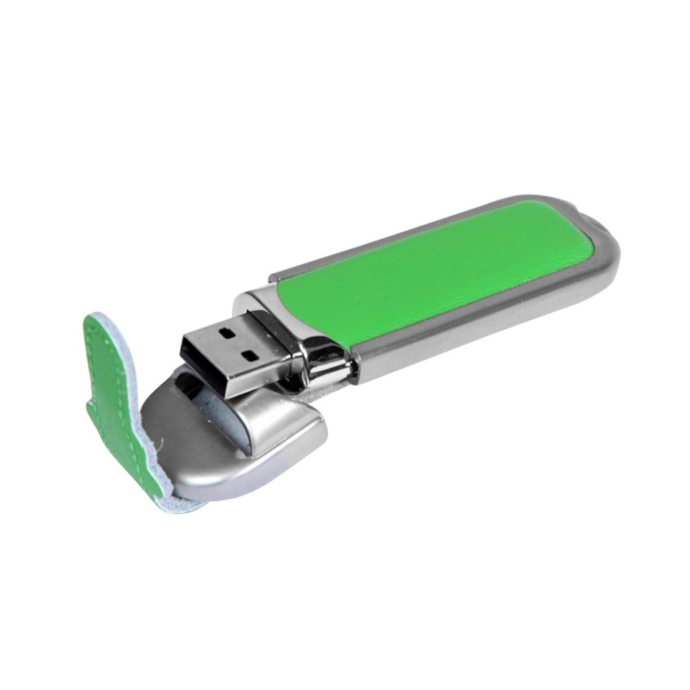 Флеш-накопитель с массивным классическим корпусом, 32 Гб. Кожаный корпус, металлические вставки.