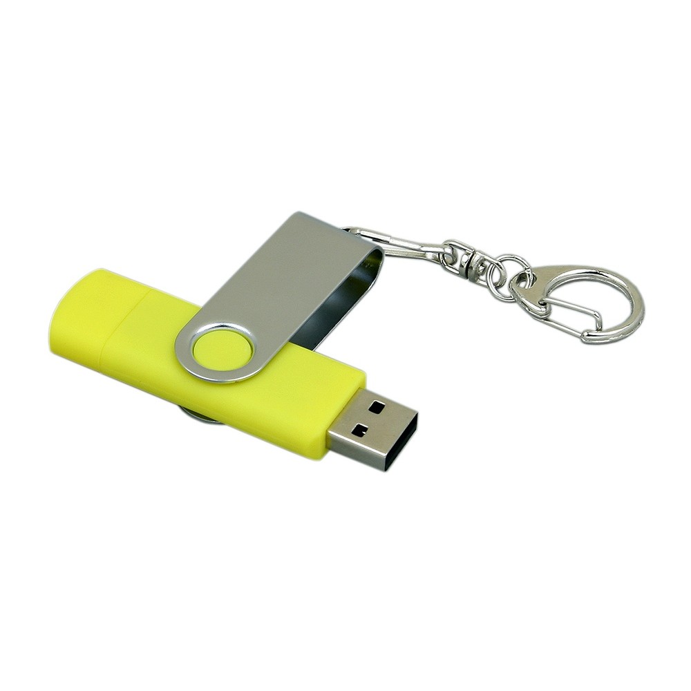 Флешка с поворотным механизмом, c дополнительным разъемом Micro USB, 16 Гб, желтый