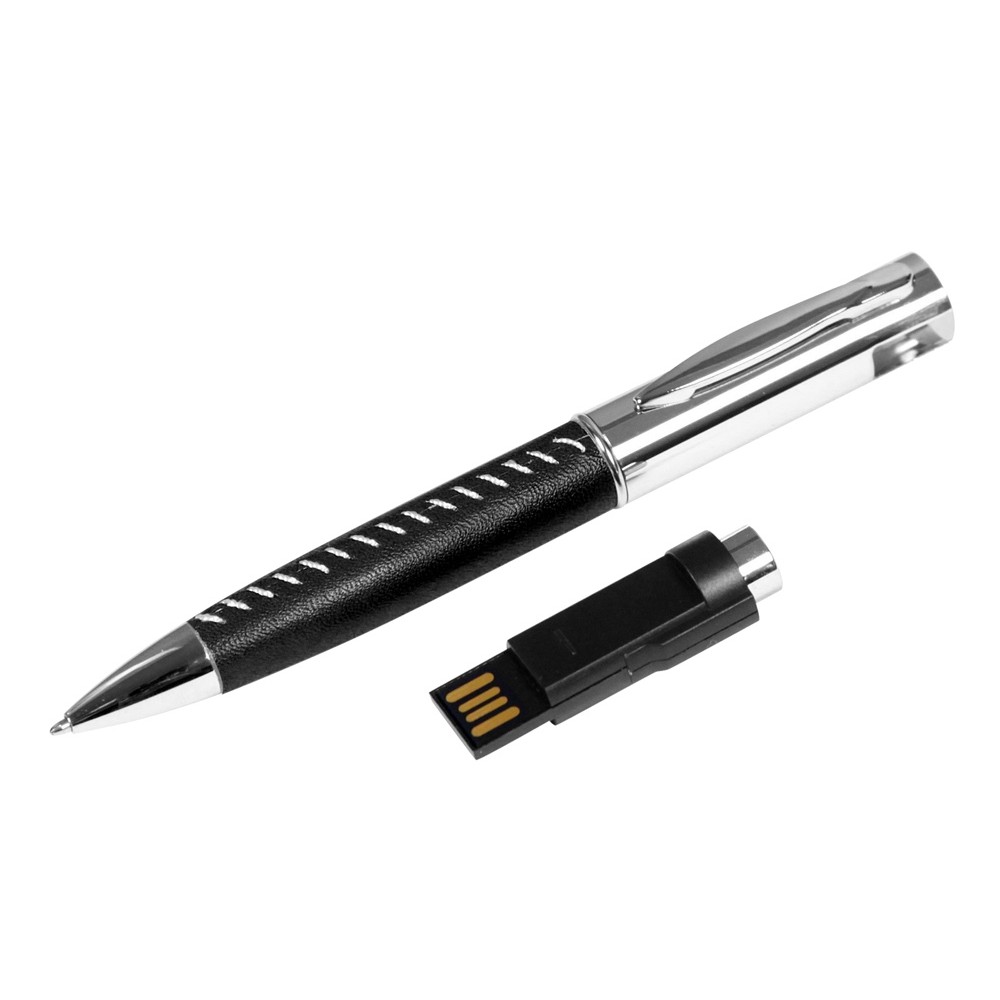 Флеш-накопитель в виде ручки с мини чипом, 32 Гб. Металлический корпус, кожаные вставки.