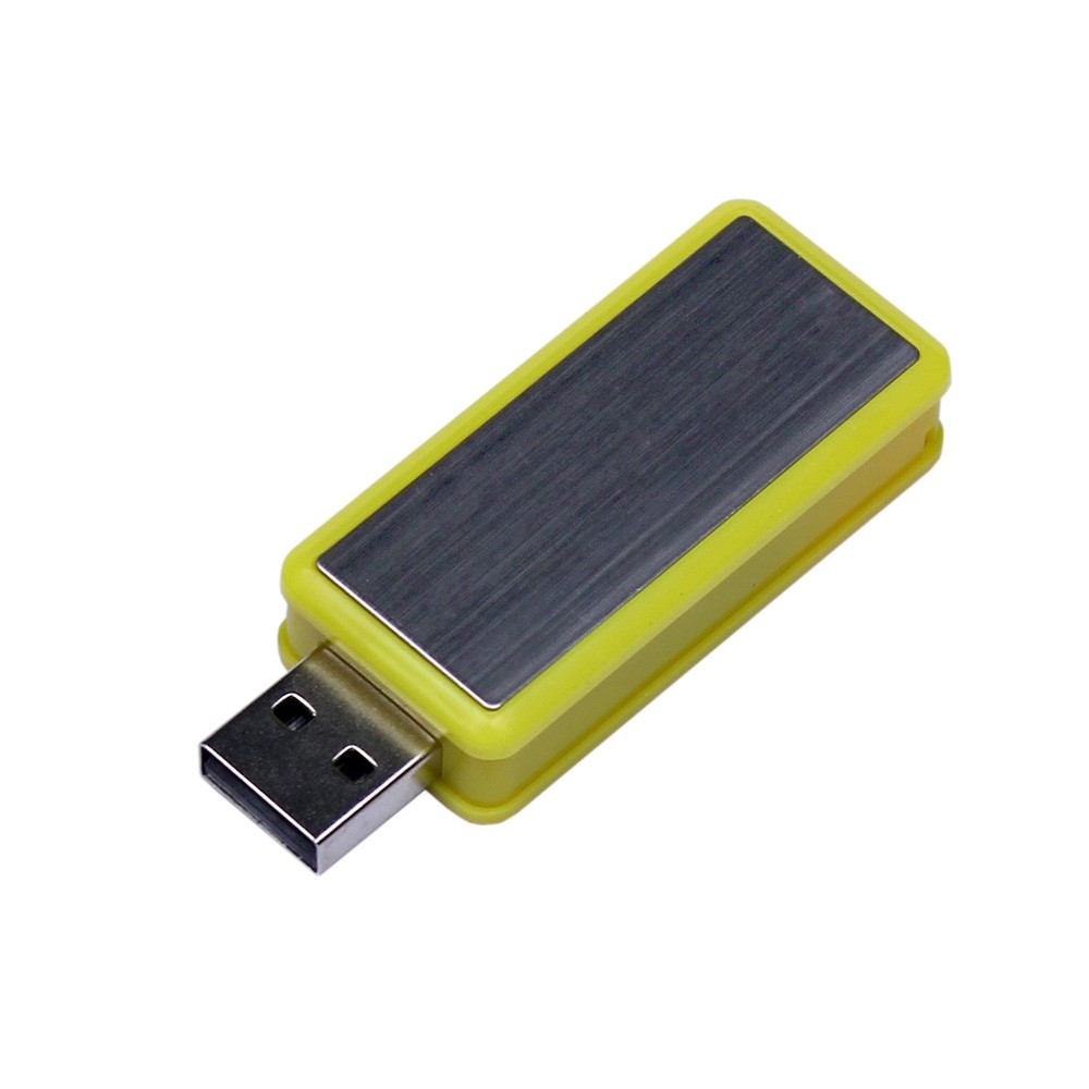 USB-флешка промо на 32 Гб прямоугольной формы, выдвижной механизм, желтый