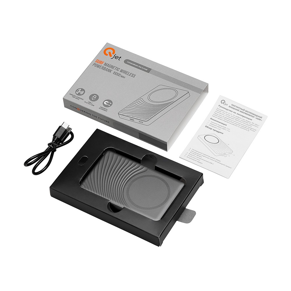 Магнитный беспроводной внешний аккумулятор, QC/PD «Сёрф», 10000 мАч, серый