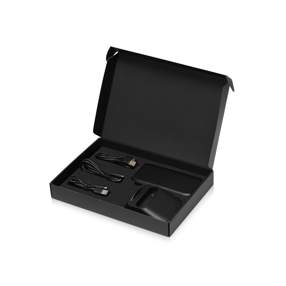 Универсальный беспроводной внешний аккумулятор с зарядной станцией. Главное преимущество – удобство использования. Подключите зарядную станцию к порту USB и установите повербанк стороной со значком беспроводной зарядки к себе (значок находится около USB разъемов). В таком положении повербанк заряжается сам, а также может заряжать и смартфон. Техническая особенность гаджета заключается в наличии сразу 2 индукционных катушек (модулей беспроводной зарядки). Смартфон можно заряжать беспроводным способом в любом положении - как горизонтально, так и вертикально! Если Вы хотите взять повербанк с собой, просто достаньте его из станции одним движением. Повербанк может заряжать одновременно 3 устройства (2 USB разъема + беспроводная зарядка). Чтобы зарядить повербанк традиционным способом без станции - в комплекте имеются кабели USB-C и micro USB. Обе стороны повербанка подходят для печати больших нанесений. Также нанесение логотипа возможно на зарядной станции.