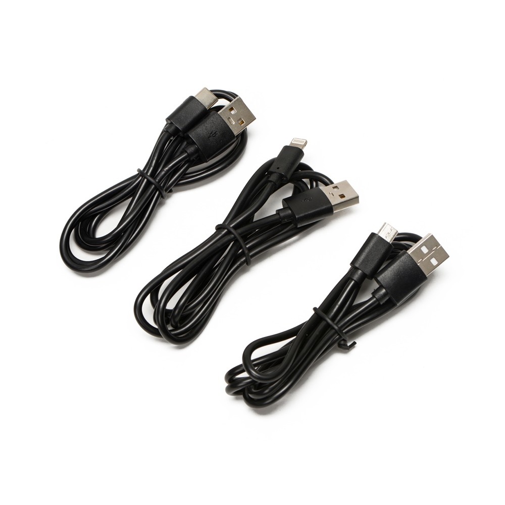 Комплектность беспроводной внешний аккумулятор, зарядная станция, USB-micro USB кабель, USB-USB-C кабель, USB-Lightning кабель, инструкция