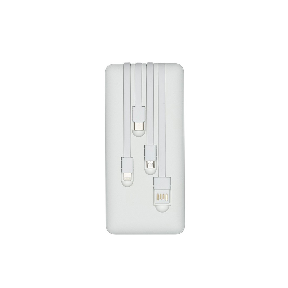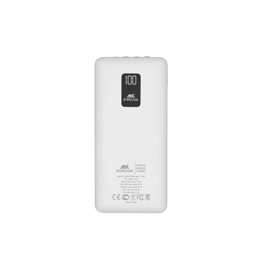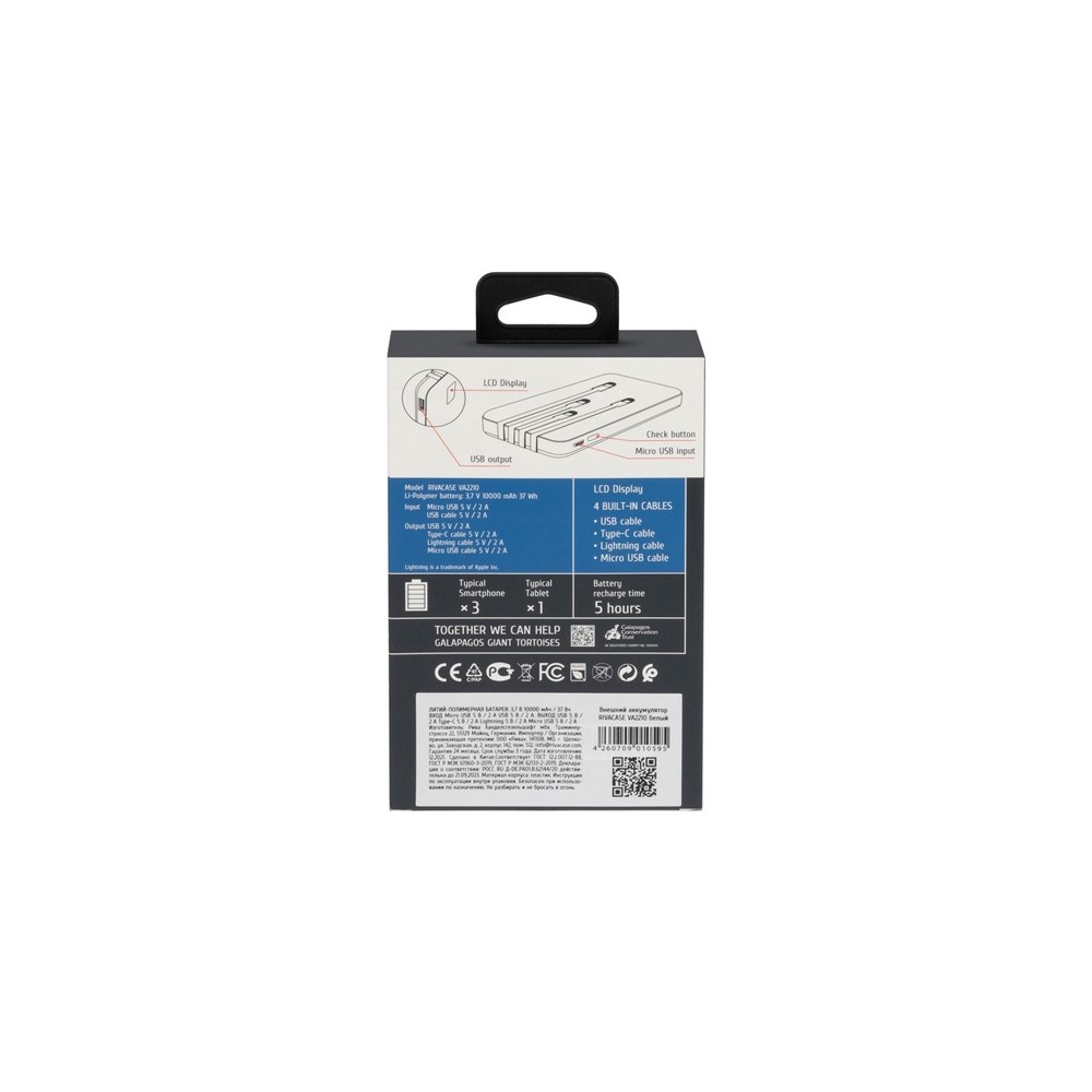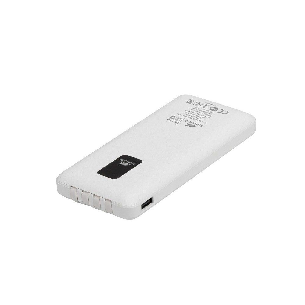 • RIVACASE VA2210 (10000 мАч) внешний аккумулятор с дисплеем и встроенными кабелями, белый, 12/48
