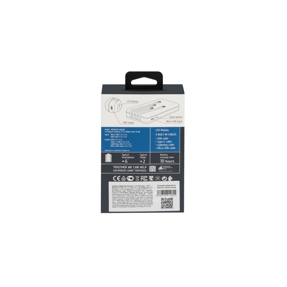 Технические характеристики RIVACASE VA2220 (20000 мАч) внешний аккумулятор с дисплеем и встроенными кабелями, белый, 12/24