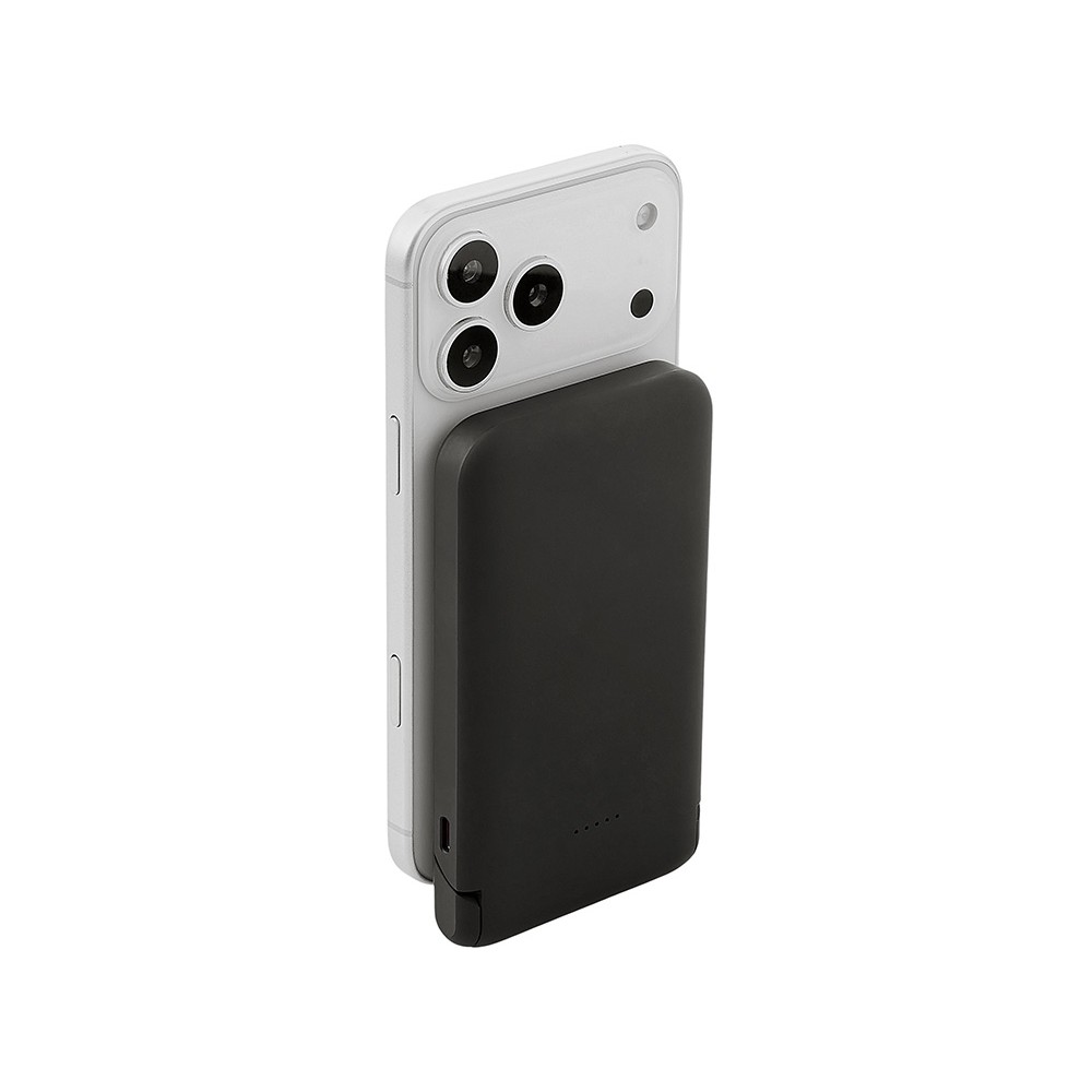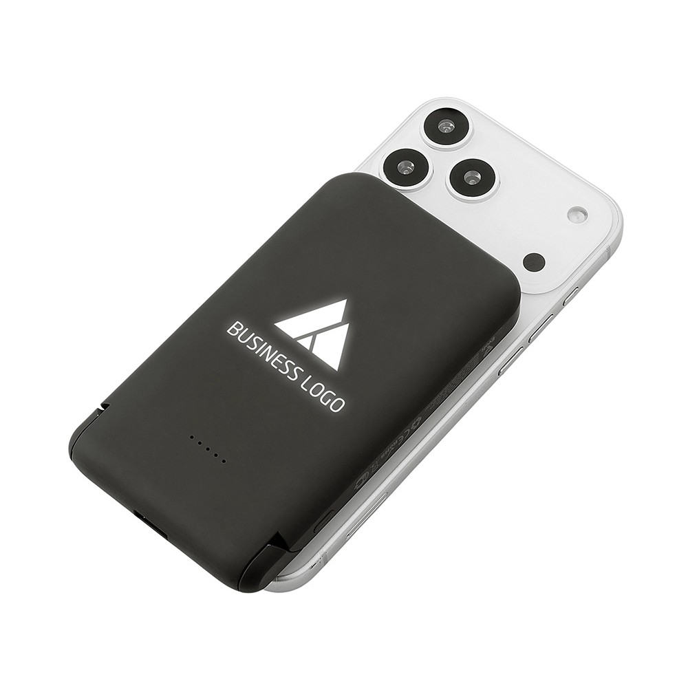 Беспроводной внешний аккумулятор «Magflash» — это не просто запас энергии, а стильный и умный аксессуар для современного ритма жизни. С ёмкостью 10000 мАч и быстрой зарядкой он надежно обеспечивает энергией смартфоны и современные гаджеты USB-C, обеспечивая до нескольких полных циклов зарядки. Поддержка беспроводной зарядки мощностью 15 Вт позволяет быстро восполнять энергию без проводов — просто положите устройство на поверхность, к iPhone аккумулятор примагнитится, что значительно облегчает его использование. Встроенный держатель-подставка позволяет комфортно разместить смартфон для просмотра видео или управления одной рукой. А светодиодная подсветка логотипа создаёт атмосферу — работает как индикатор заряда и стильный акцент вашего бренда.