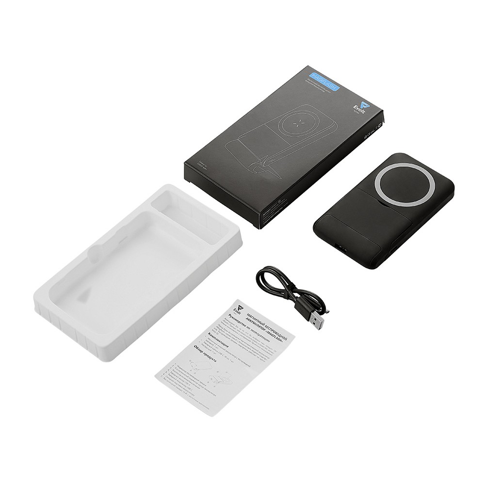 Комплектность магнитный внешний аккумулятор с беспроводной зарядкой, кабель USB - Type C, инструкция
