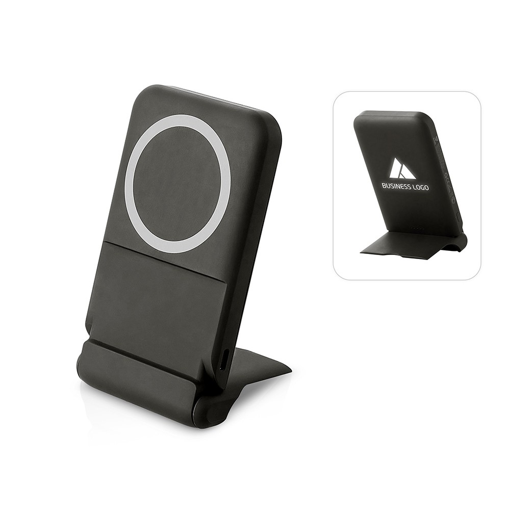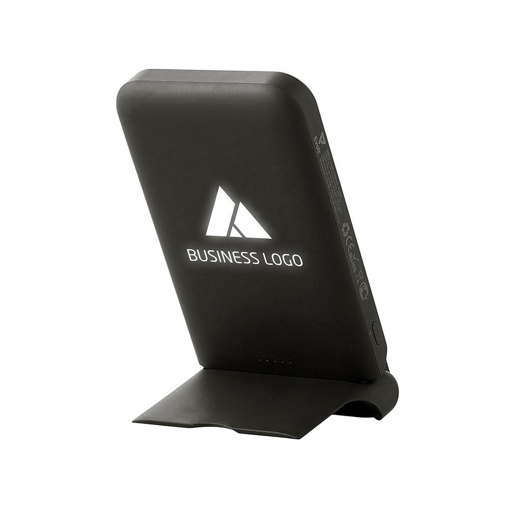 Беспроводной внешний аккумулятор с подсветкой лого и подставкой «Magflash», 10000 мАч, 15 Вт, черный