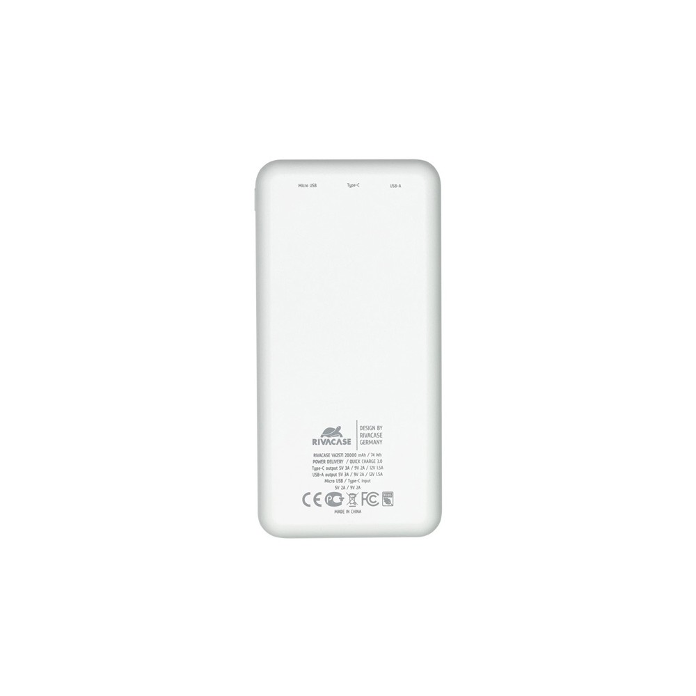 Технические характеристики RIVACASE VA2571 (20000 мАч) QC/PD внешний аккумулятор, белый 12/24