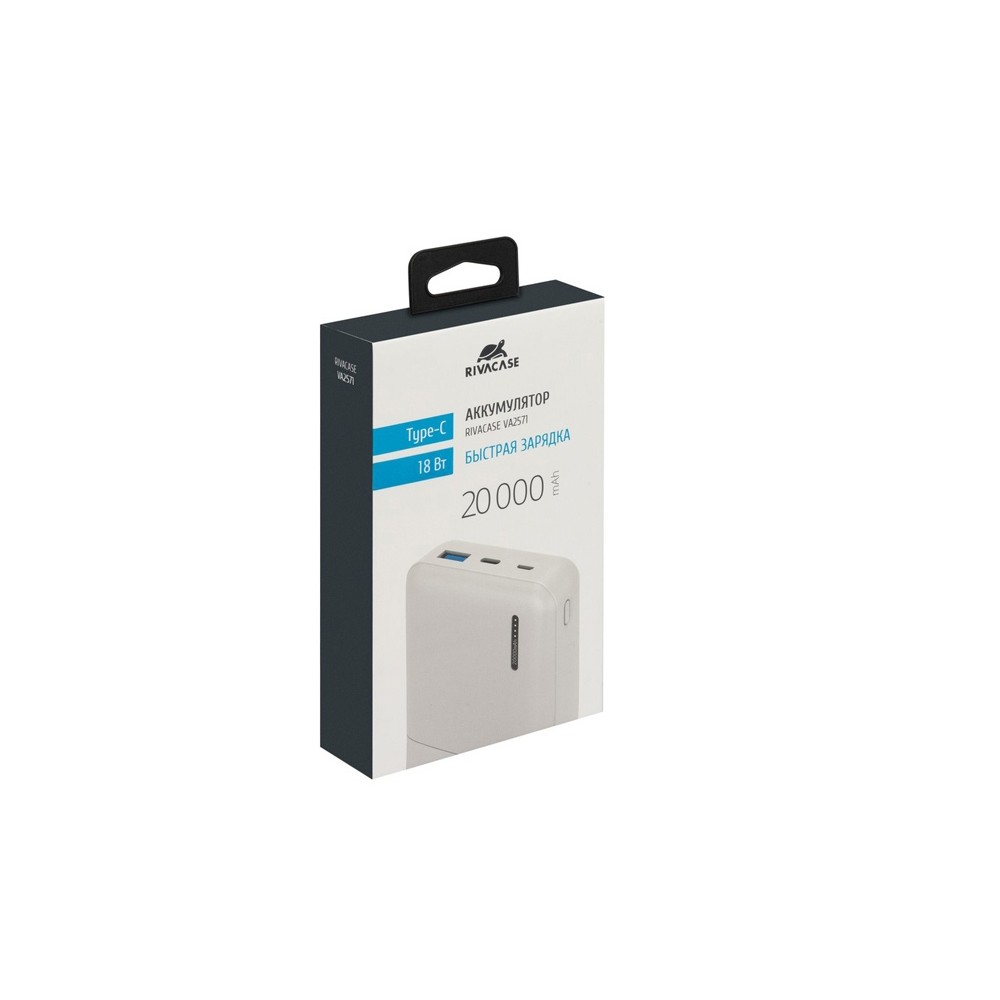 • RIVACASE VA2571 (20000 мАч) QC/PD внешний аккумулятор, белый 12/24