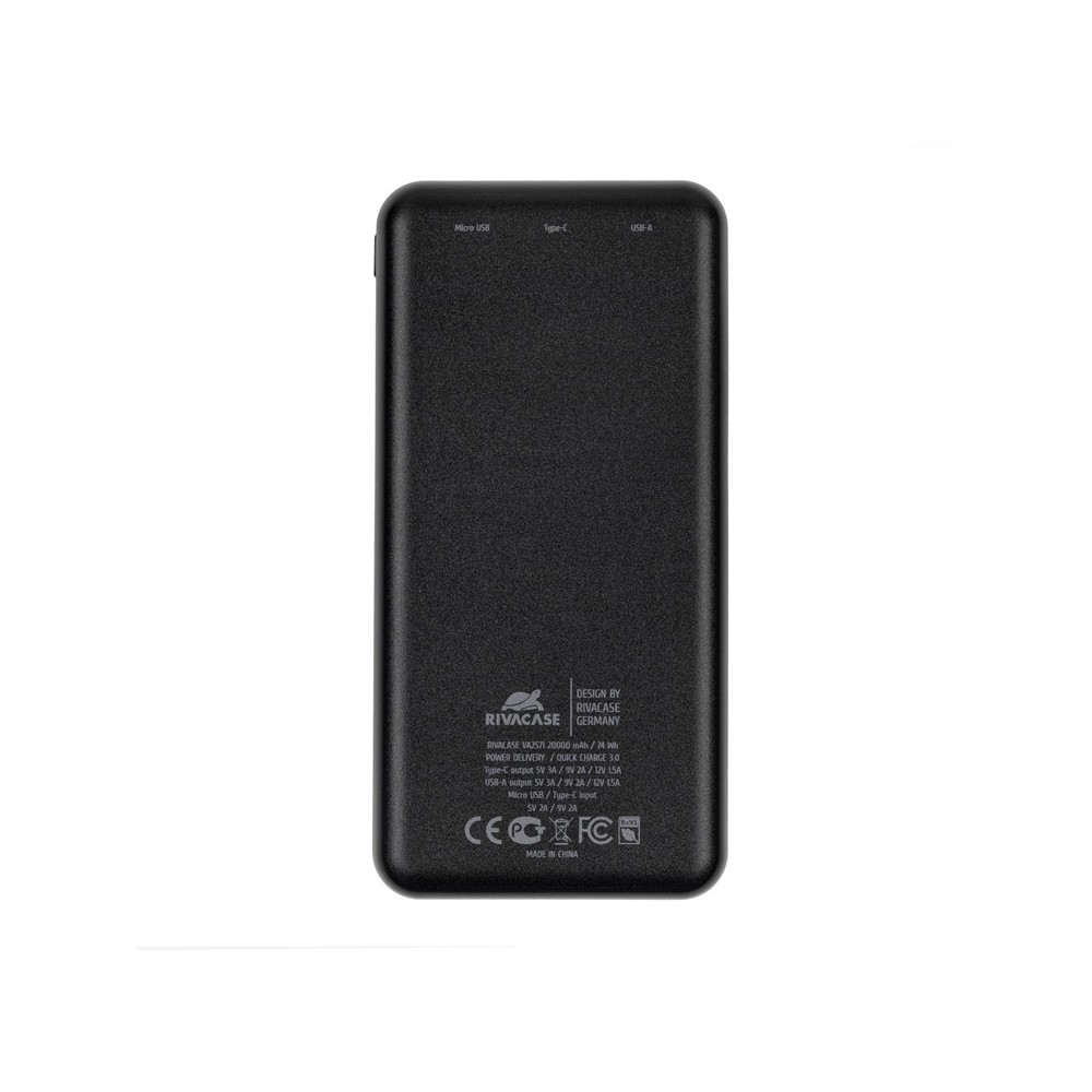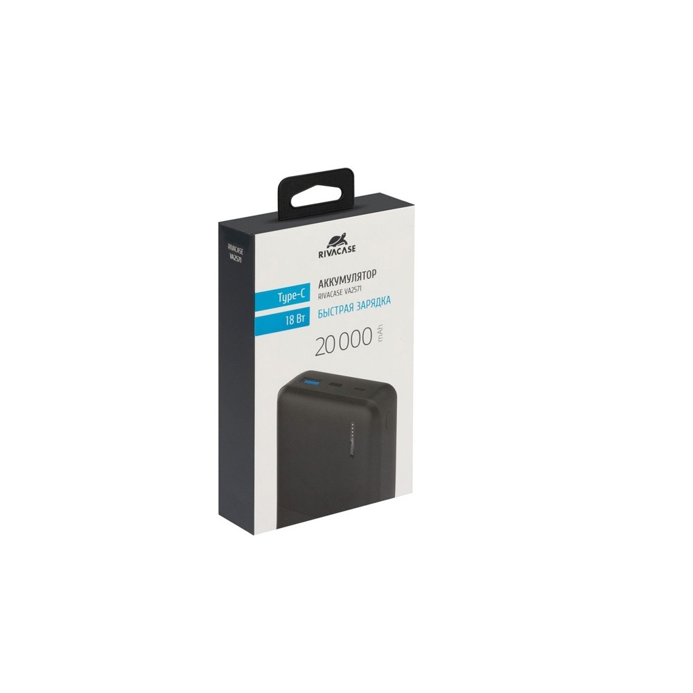 • RIVACASE VA2571 (20000 мАч) QC/PD внешний аккумулятор, черный 12/24