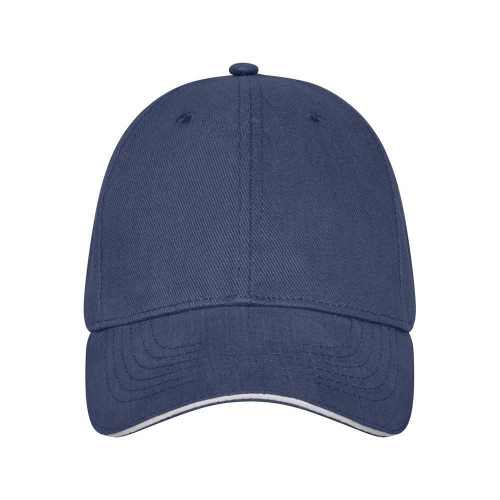 Изогнутый козырек, обшивка с заполнением. Обшитые люверсы для вентиляции. С металлической застежкой. Хлопок-твил "браш" 100% Хлопок, 260 g/m2.