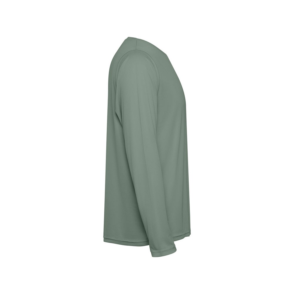 Унисекс лонгслив из технологичного полотна. Отстрочки в тон. Спинка с удлинением. Боковые швы со смещением вперед.