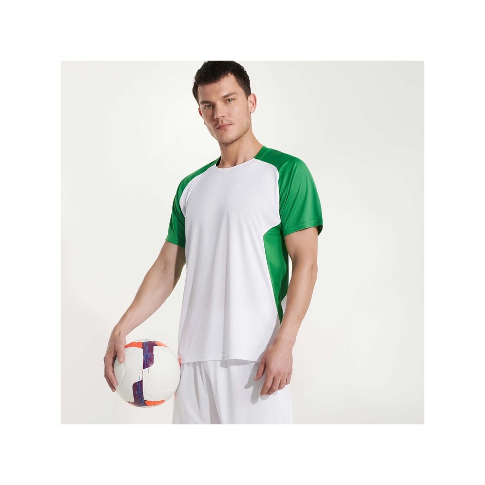 Спортивная футболка с коротким рукавом реглан. Круглый вырез горловины. Контрастные рукава и боковые вставки.