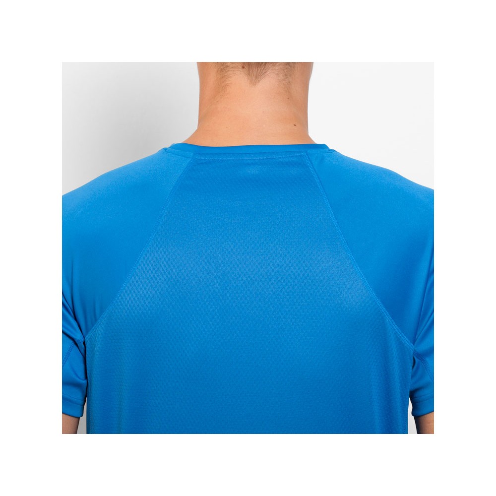 Спортивная футболка унисекс из технологичного полотна. Круглый вырез горловины укреплен со стороны спинки контрастной тесьмой. Спинка со вставкой из 3D сетки. Легко сохнущая дышащая модель