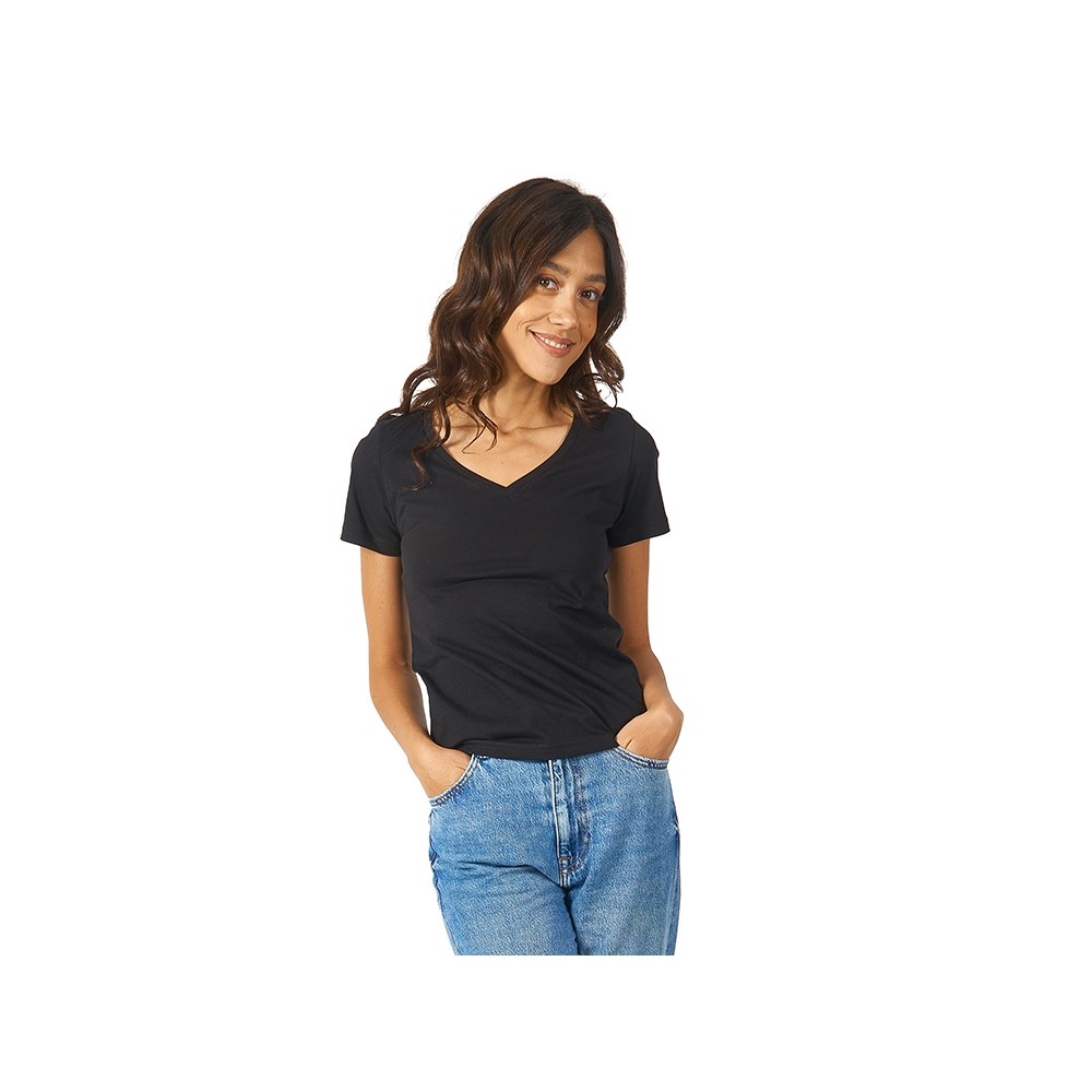 Женская футболка из натурального хлопка с элегантным V-образным вырезом. Материал отлично подходит для нанесения рекламной информации. Натуральная ткань не вызывает раздражения кожи.