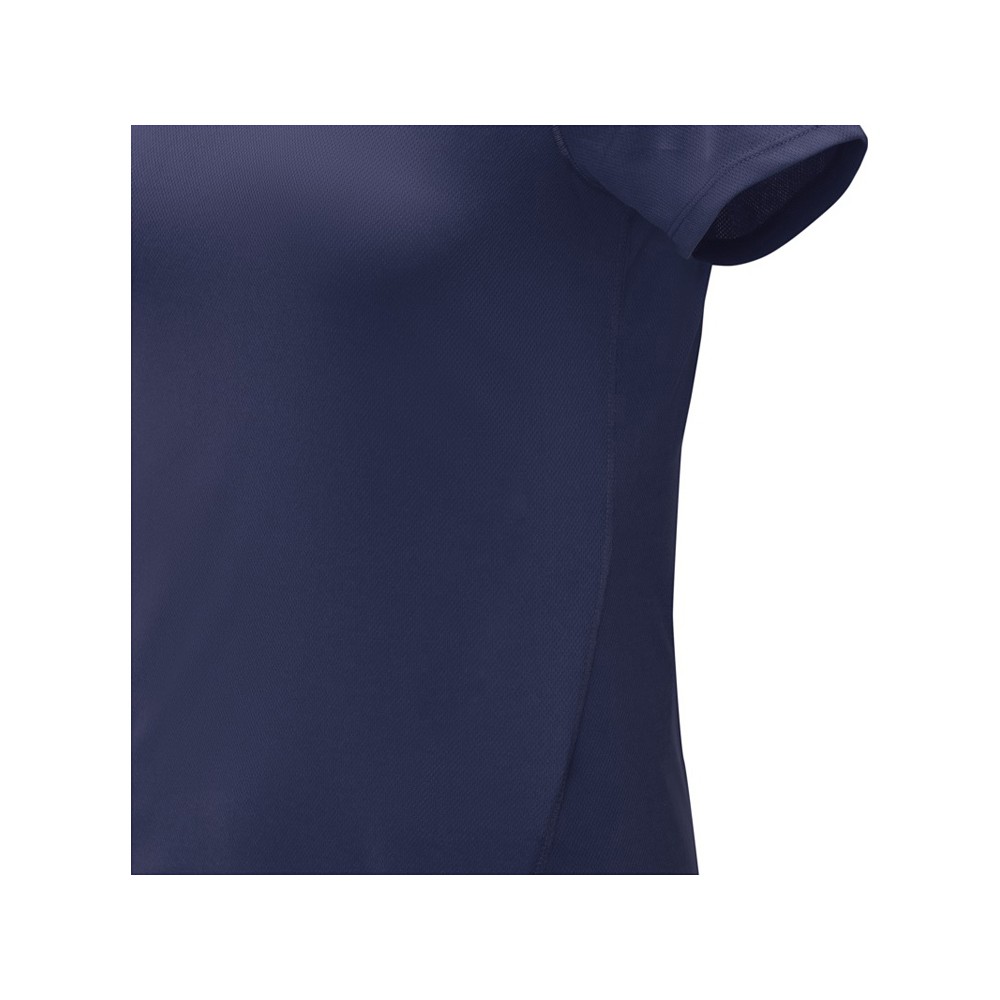 Женская стильная футболка поло с короткими рукавами Deimos. Возможность нанесения на внутреннюю часть фирменной символики. Планка с двумя пуговицами. Для большего комфорта основной ярлык можно оторвать или отрезать. Обработка воротника обтачкой из основной ткани. Передний боковой шов со строчкой «флатлок». Сетчатая ткань с покрытием cool fit 100% Полиэстер, 105 g/m2.