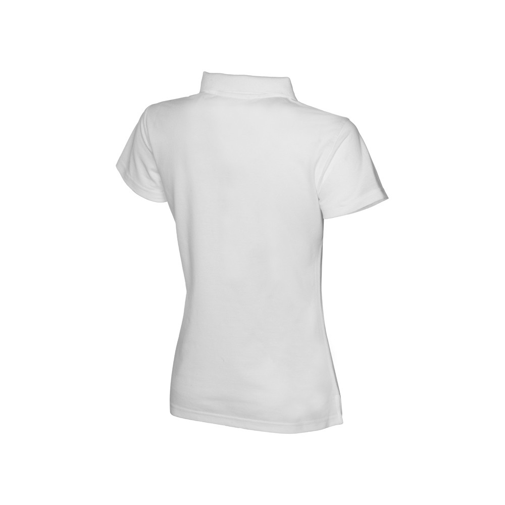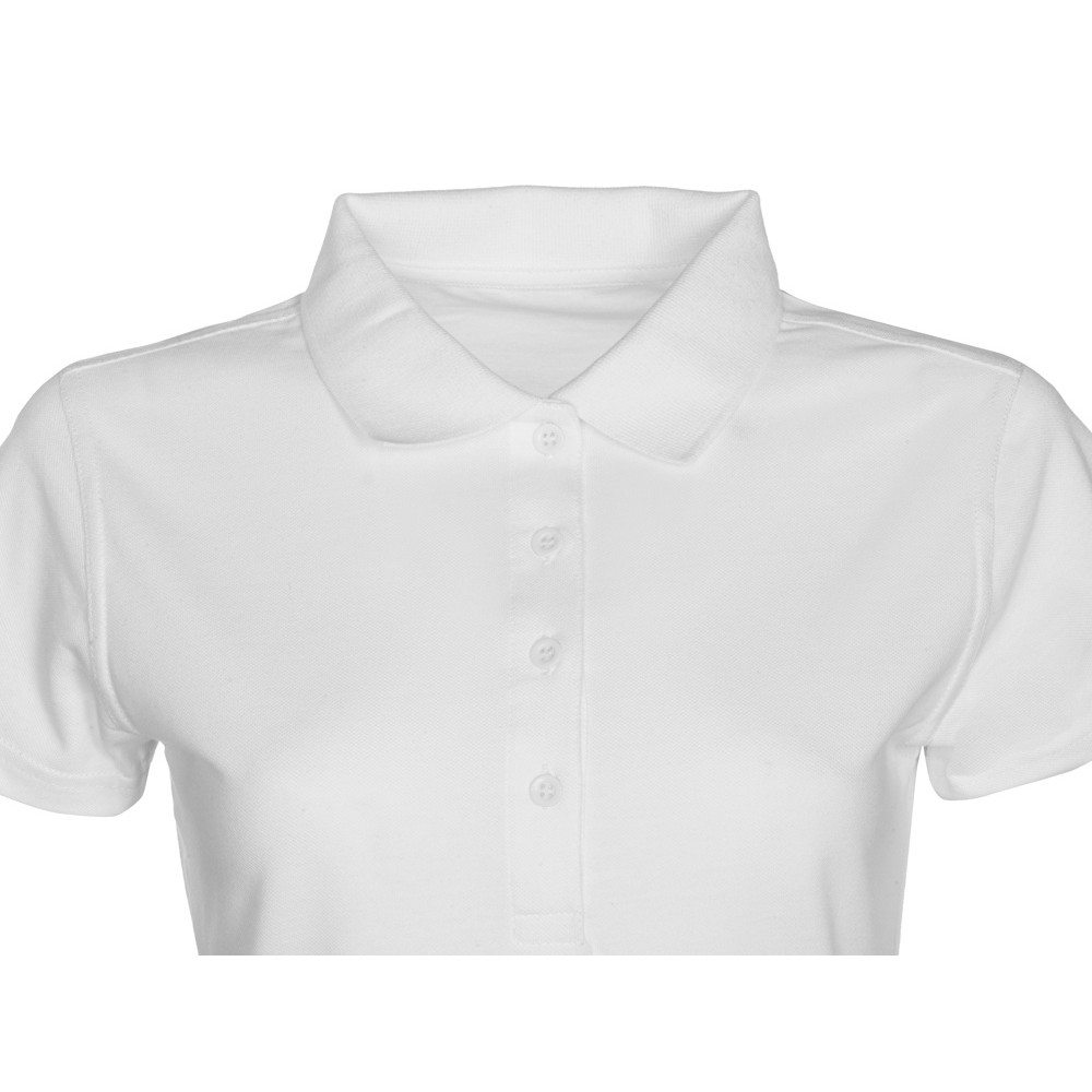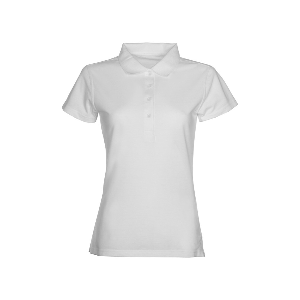 Женская рубашка-поло First. Воротник 1х1. Обшивка внутри воротника. Мужская и детская модели с 2 пуговицами, женская - с 4 пуговицами. Пуговицы с гравировкой в тон. Пике, 100% хлопок. 160 г/м2.