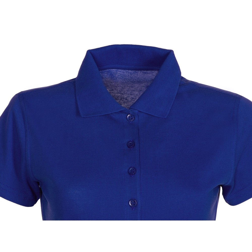 Женская рубашка-поло First. Воротник 1х1. Обшивка внутри воротника. Мужская и детская модели с 2 пуговицами, женская - с 4 пуговицами. Пуговицы с гравировкой в тон. Пике, 100% хлопок. 160 г/м2.