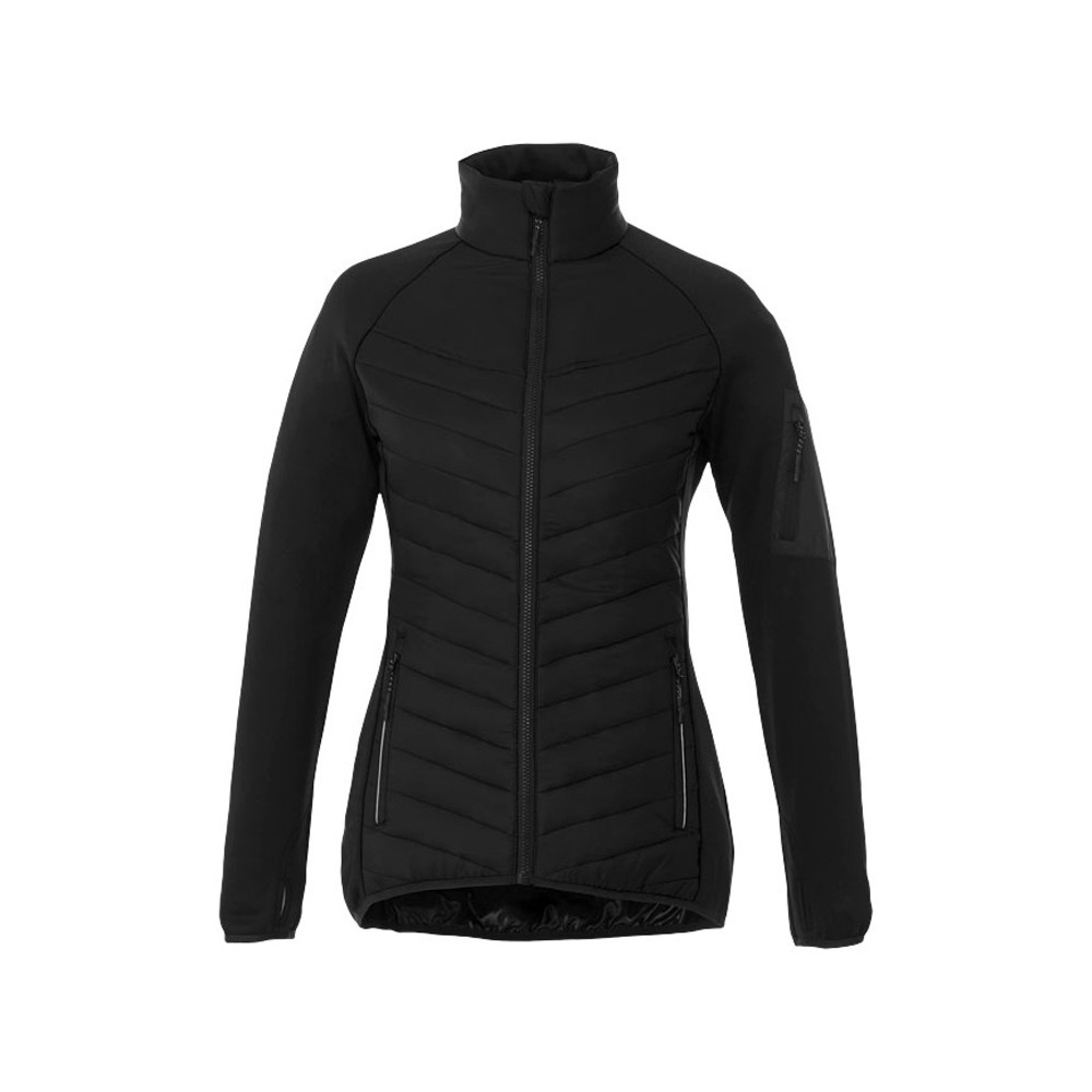 Женская утепленная куртка Banff. Внутренний противоветровой клапан и защита подбородка. Внутренний выход для медиапроводов. Удлиненная задняя часть изделия. Швы моделирующие фигуру и приталенный крой (женская модель).Манжеты-резинки контрастного цвета. Отделка контрастной тканью. Молния с контрастной лентой. Молния легкого скольжения. Петелька-вешалка. Комфортный ярлык-трансфер на изделии. 100% нейлоновая тканая матовая отделка 380T, водоотталкивающая и пухонепроницаемая ткань. Контрастная ткань: 94% полиэстер, 6% эластан с водоотталкивающей поверхностью. 38 г/м².