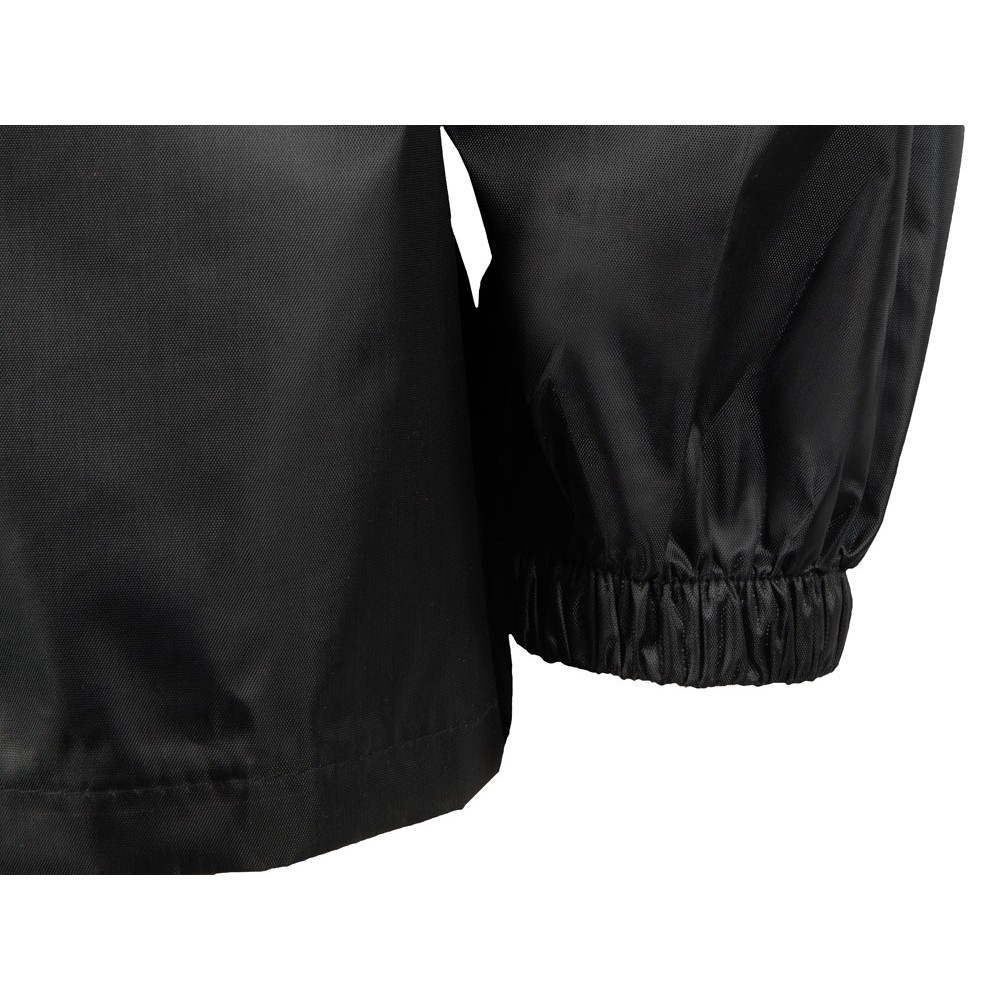 Рукав реглан обеспечивает комфортную посадку, не сковывает движения, что позволяет использовать дождевик для активного отдыха, а резинка по низу помогает сохранить тепло, препятствуя попаданию влаги и защищая от ветра.