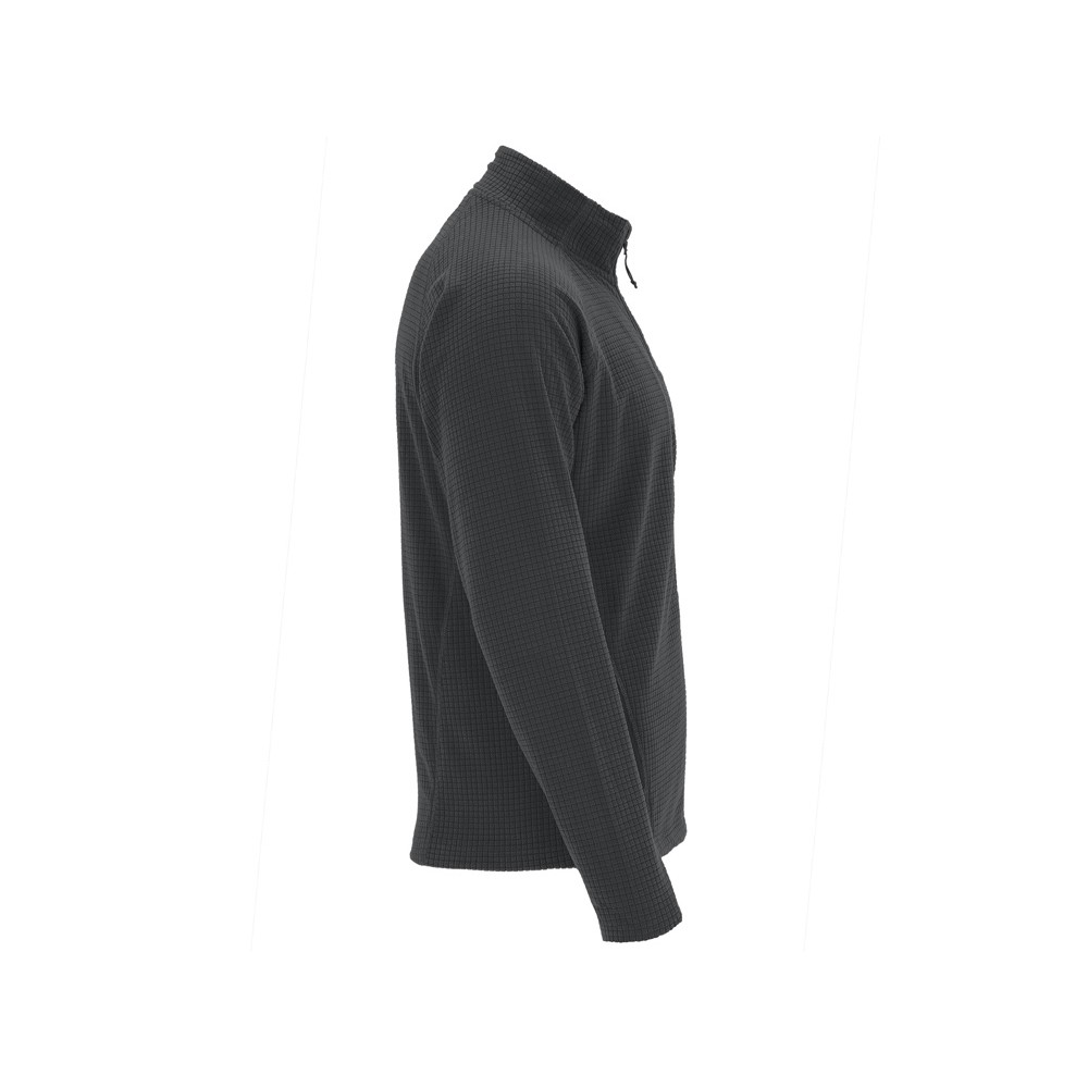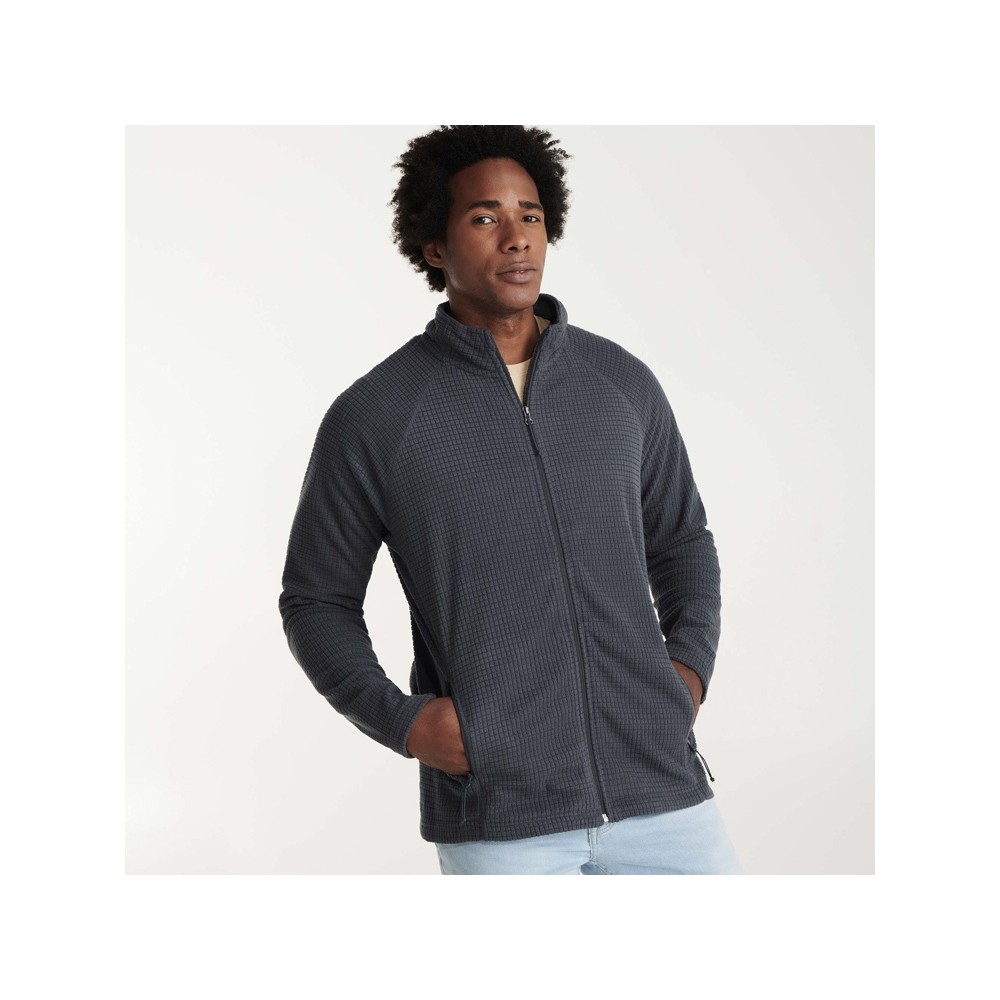 Флисовая куртка с рукавом реглан из полотна со структурой рипстоп (клеточка). Центральная застежка и карманы на молнию в тон. Боковые швы переведены на полочку. Манжеты с разрезом для большого пальца.