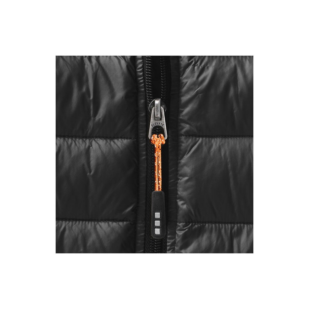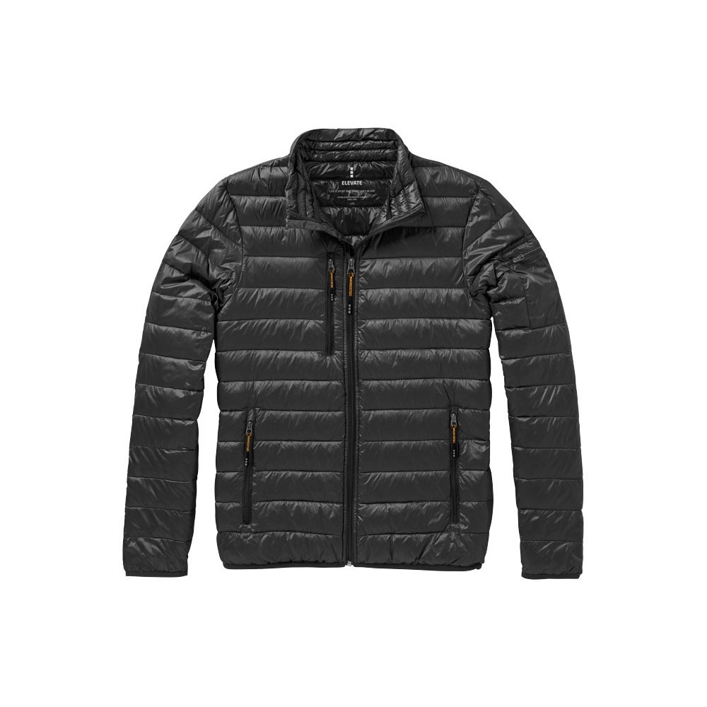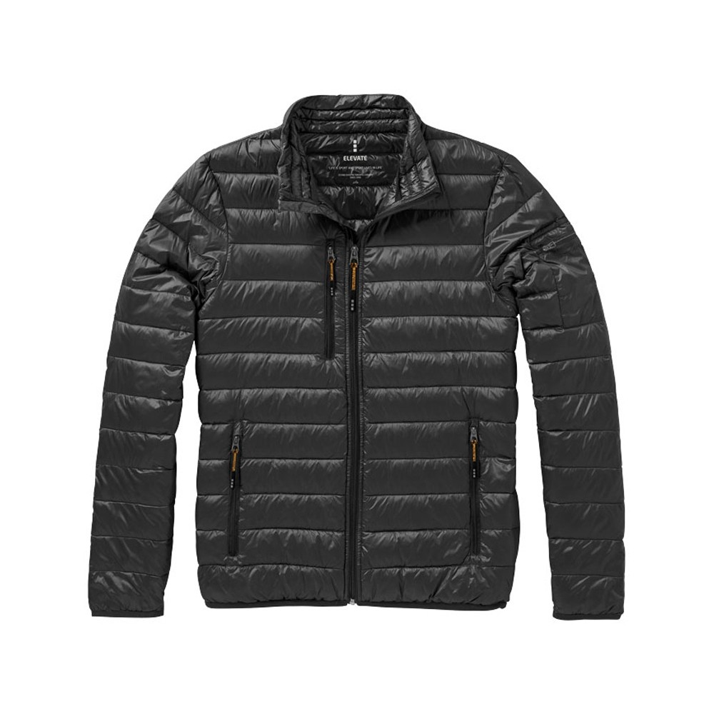 Легкая куртка Scotia. Стандартный покрой. Ткань не пропускает пух. Карманы для рук и нагрудный на молнии. Карман на рукаве на молнии можно использовать для нанесения. Резинка на манжетах и внизу куртки. Ремешки на собачку (второй комплект в цвете антрацит). Внутренний противоветровой клапан и защита подбородка. Ткань дышащая, ветронепроницаемая и влагоотталкивающая. Отражающий лого сзади. Легкий пуховик. Ткань из 100% нейлона с матовым и блестящим водоотталкивающим покрытием, 20D. 80% пух и 20% перо. 115 г/м².