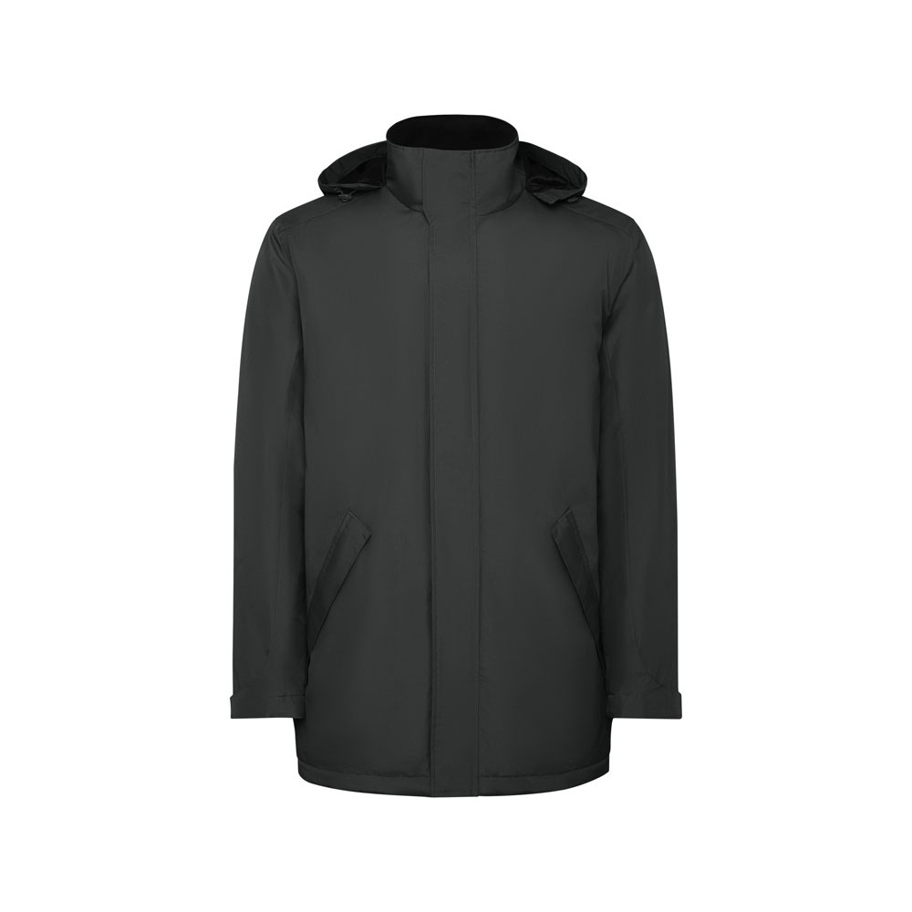 Утепленная парка из водоотталкивающего материала. Высокий воротник, капюшон с застежкой на липучку. Центральная молния в тон. Боковые карманы на молнии с клапанами. Внутренний карман на липучке. Регулируемые манжеты на липучке.