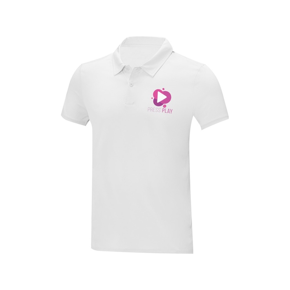 Мужская стильная футболка поло с короткими рукавами Deimos. Возможность нанесения на внутреннюю часть фирменной символики. Планка с двумя пуговицами. Для большего комфорта основной ярлык можно оторвать или отрезать. Обработка воротника обтачкой из основной ткани. Передний боковой шов со строчкой «флатлок». Сетчатая ткань с покрытием cool fit 100% Полиэстер, 105 g/m2.