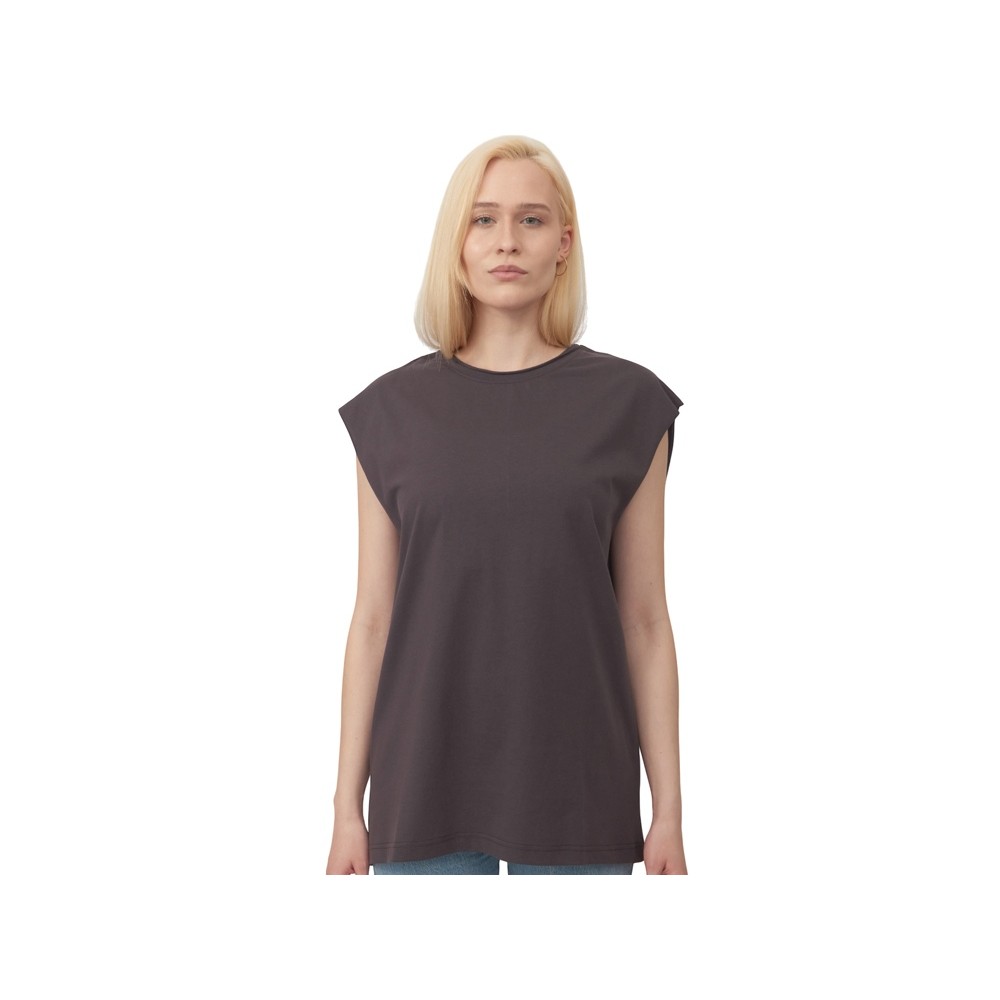 Расслабленная посадка модели и необработанные швы проймы и края горловины позволяют чувствовать себя комфортно и оставаться на волне трендов.