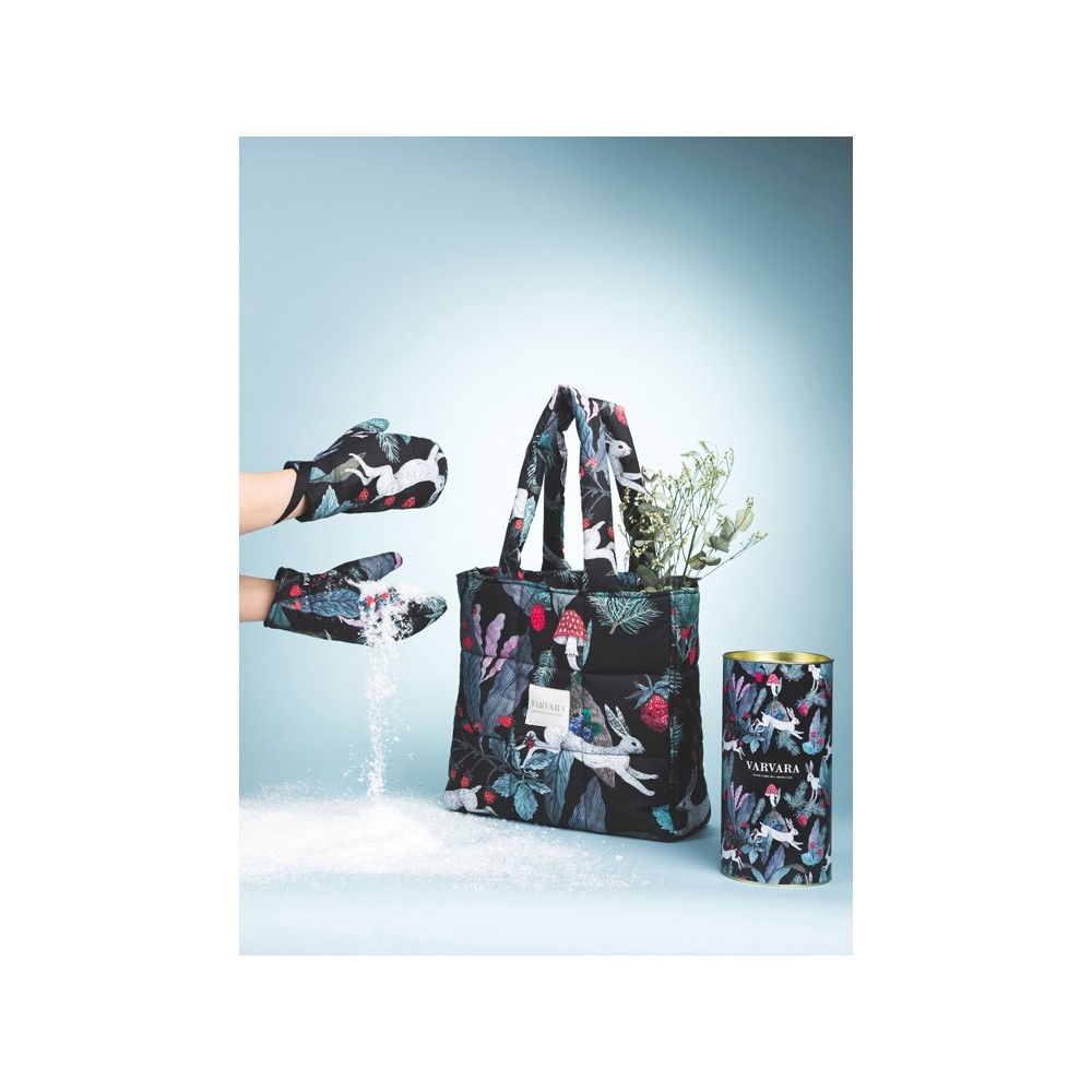 Авторский принт написан художницей вручную специально для российского бренда Varvara. Художница размышляла на тему русской природы, культуры и искусства - тут и лесная земляника, и сочная зелень, и конечно, сказочные зайцы - как будто только что сошли с полотен В. Васнецова.