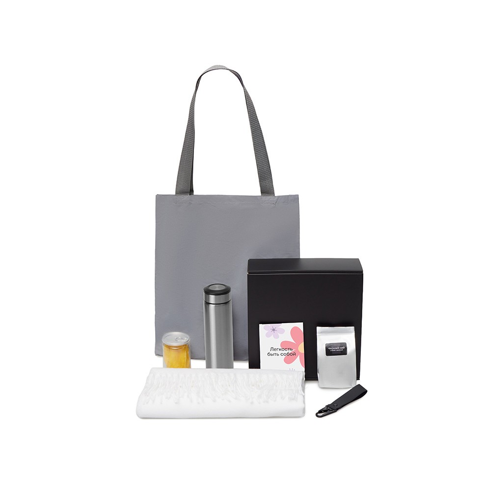 Подарочный набор «Re:f. Walk» с палантином, шоппером и термосом, черный