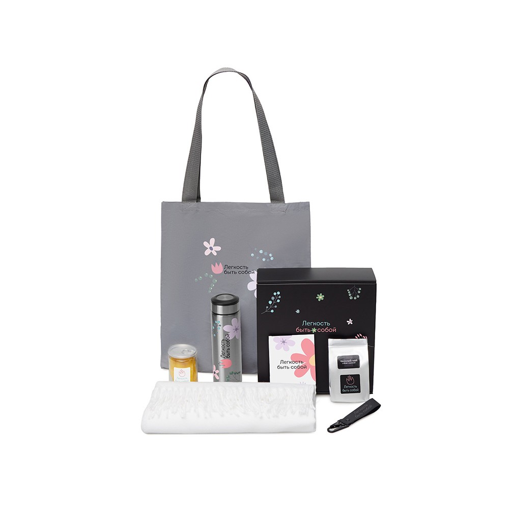 Подарочный набор «Re:f. Walk» — о прогулках, которые дарят тепло и удовольствие. Мягкий палантин согреет в прохладный день, а термос с ароматным чаем сделает любую паузу приятной и уютной. В шопере удобно носить с собой все необходимое, а манго добавляет сладкую нотку радости и солнца. Этот набор напоминает: даже обычная прогулка может стать временем для себя, наполненным комфортом и маленькими удовольствиями.