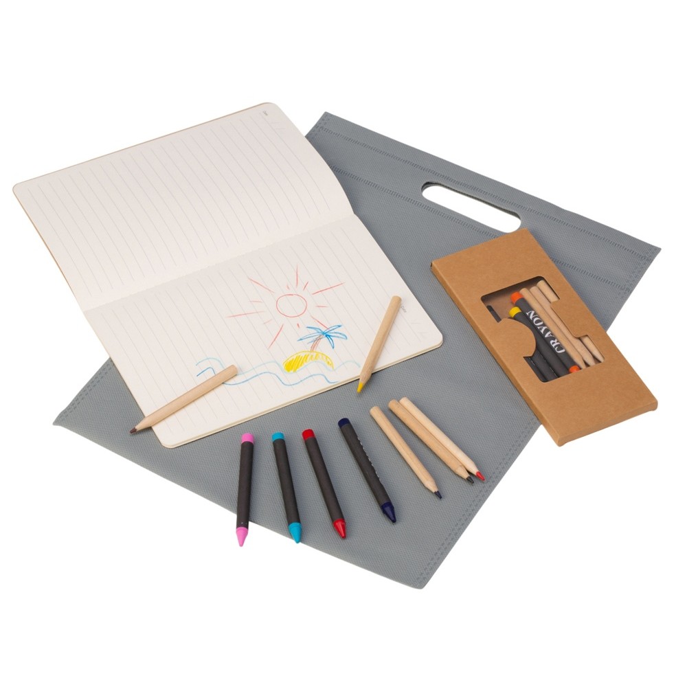 Набор из блокнота и цветных карандашей отлично подойдёт для детского промо-сувенира.