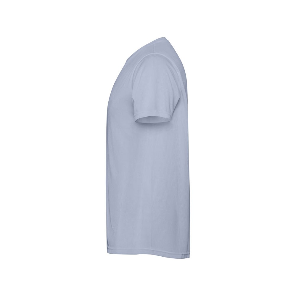 Детская футболка с коротким рукавом из технологичного полотна. Отстрочки в тон. Спинка с удлинением. Боковые швы со смещением вперед.