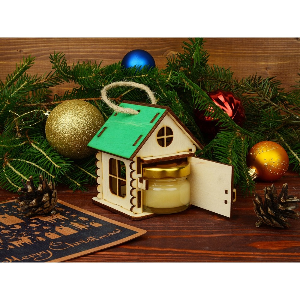 Подарочная упаковка “Домик” выполнена в виде игрушки, которую легко можно поставить на стол, шкаф или повесить на стену. Ее также можно использовать, как елочное украшение или новогодний подарок. Она изготовлена из экологически чистых материалов и обладает чарующим древесным ароматом. В домике открывается дверца, и в него можно поместить небольшую баночку с медом или вареньем. Яркие цвета крыши домиков и эффектная конструкция помогут украсить любой интерьер, как в офисе, так и в квартире. Подарочная упаковка “Домик” позволит вам сделать оригинальный и запоминающийся подарок для руководителя или коллеги.
