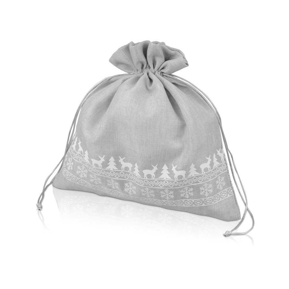 • Мешочек подарочный новогодний, джут, большой, серый